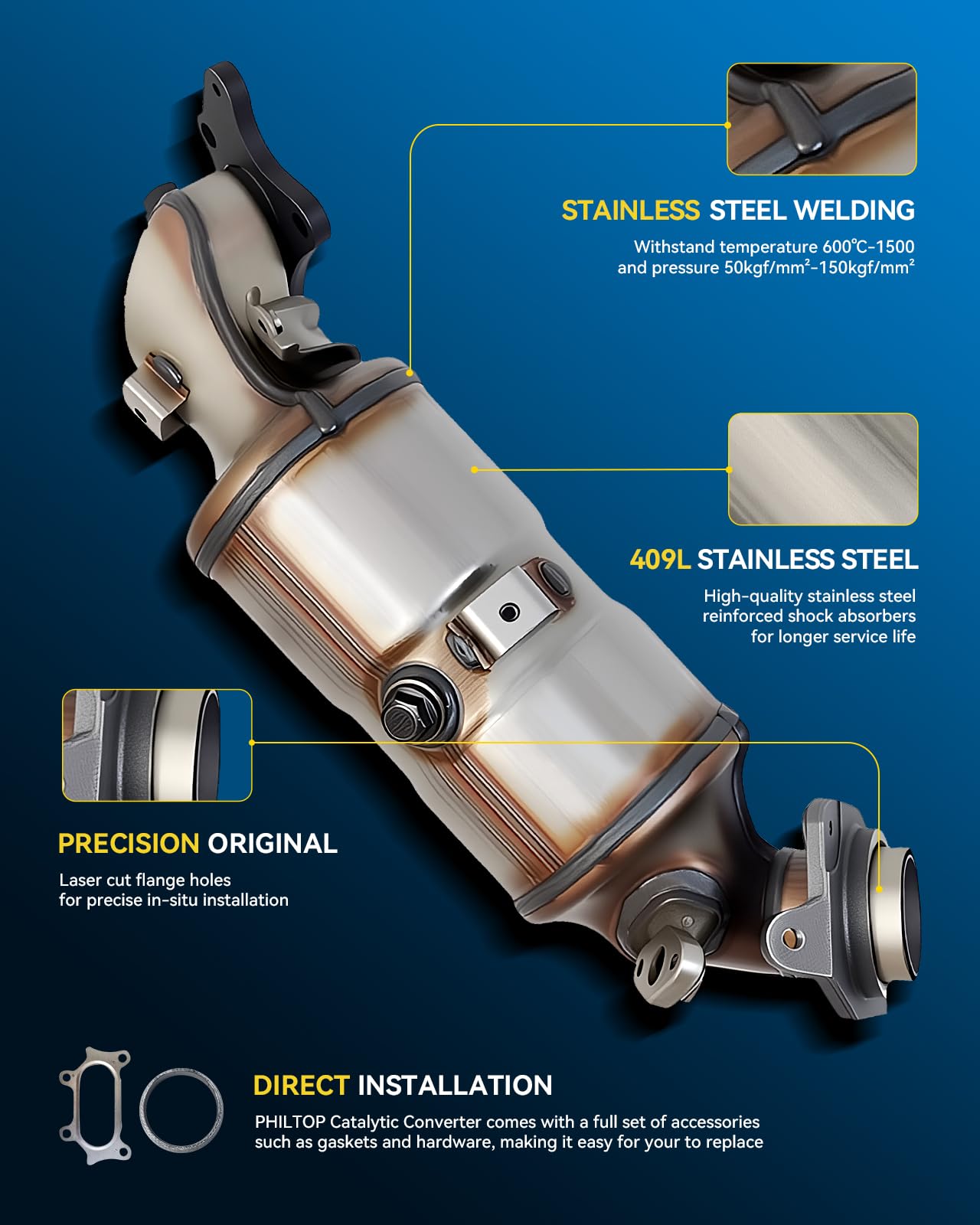 HIGH QUALITY : Stainless steel catalytic convertor with Sturdy welded seam connection provide Highly heat shield, rust and corrosion resistant for longer life without fear of bending or melting.