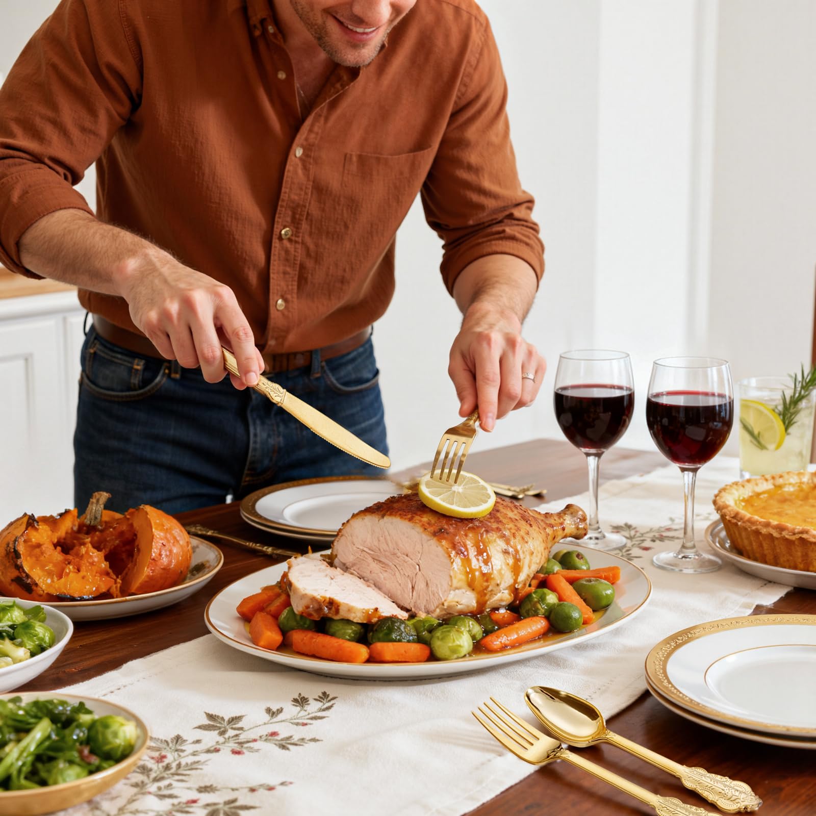 PERFECT FOR ANY OCCASION: WDF gold plastic silverware perfect for your birthday, childrenβs party, banquet dinner, catering event, reunion, engagement party, weddings, Halloween, Thanksgiving, Christmas, holiday. Enjoy your party!