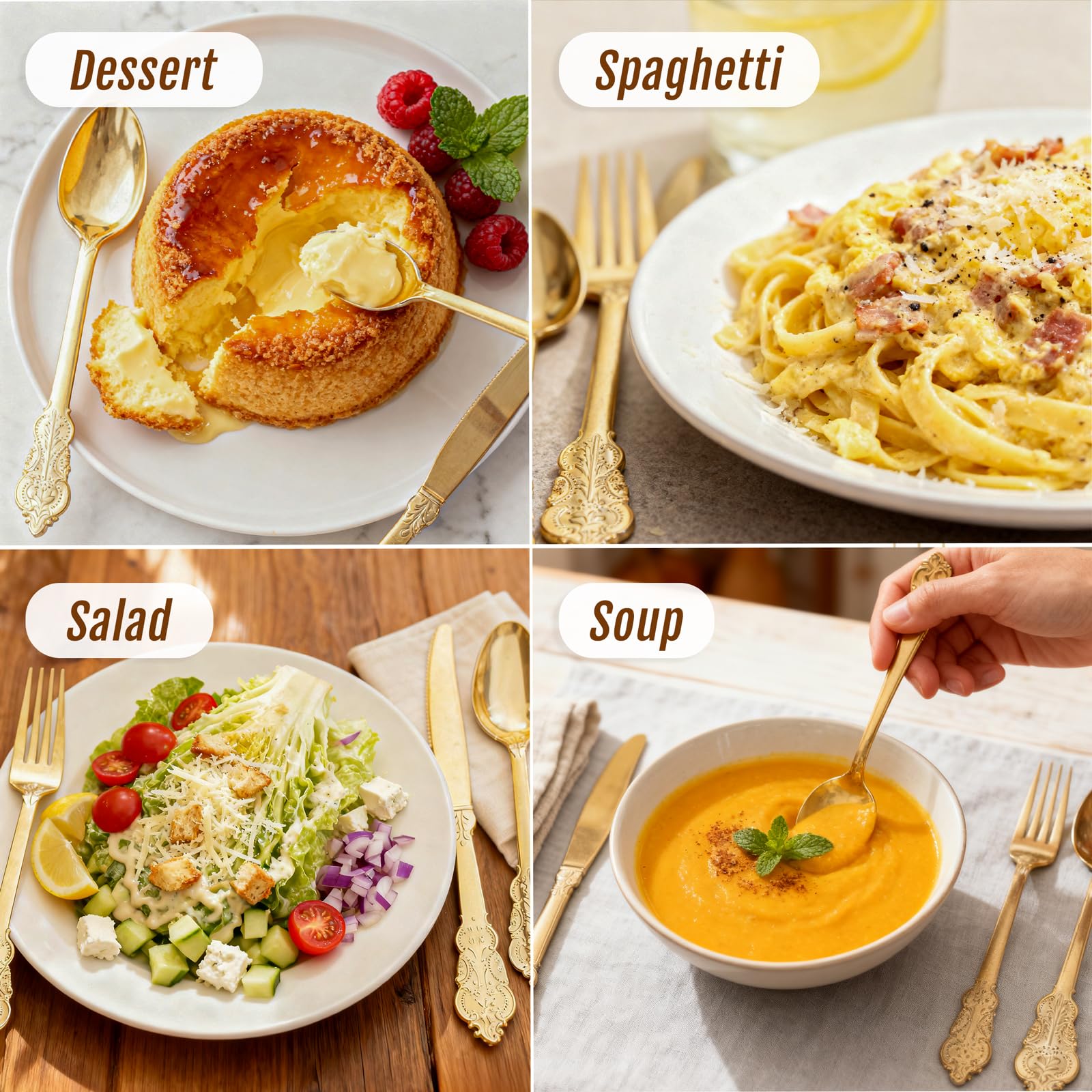 CONVENIENT TO USE - When the party is over, you can spend more time with family and less time cleaning dirty gold disposable cutlery. Keep them and reuse it. So convenient and release your hands.