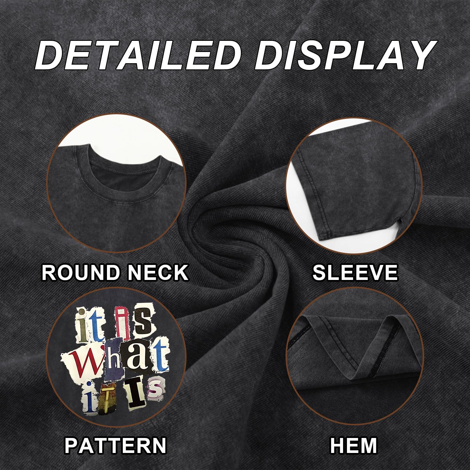Design:The back of the T-shirt features a "It Is What It Is" print, delivering a powerful design with a street style vibe, graphic tees for men, vintage oversized tshirt, streetwear men t-shirts, letter printed tees men