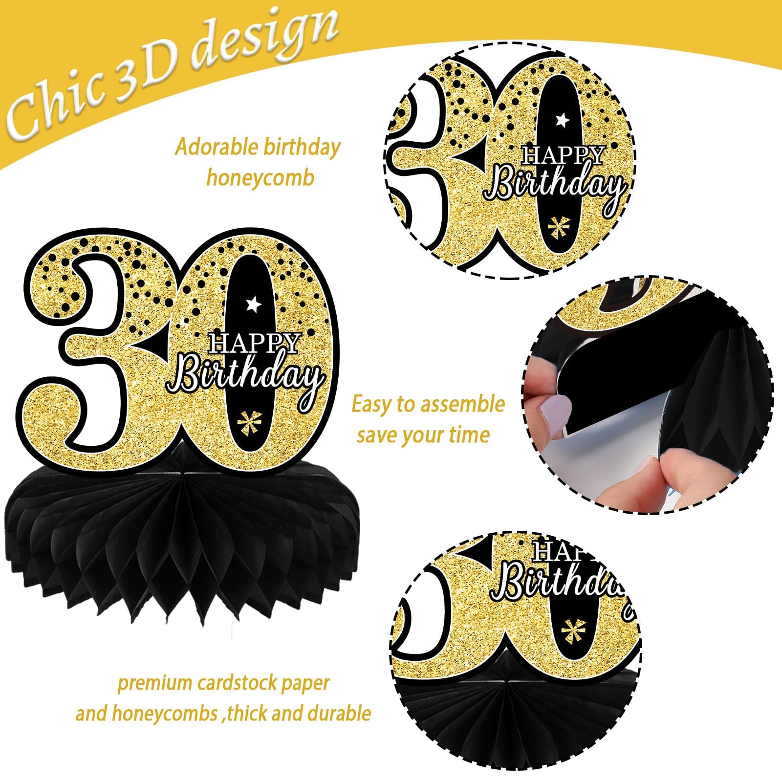 Great size: their sizes are about 6 x 8 inches, add some atmosphere by setting these gold decorations for the birthday party in the middle of the table and these cool black and gold decorations are impressive enough to be noticed.