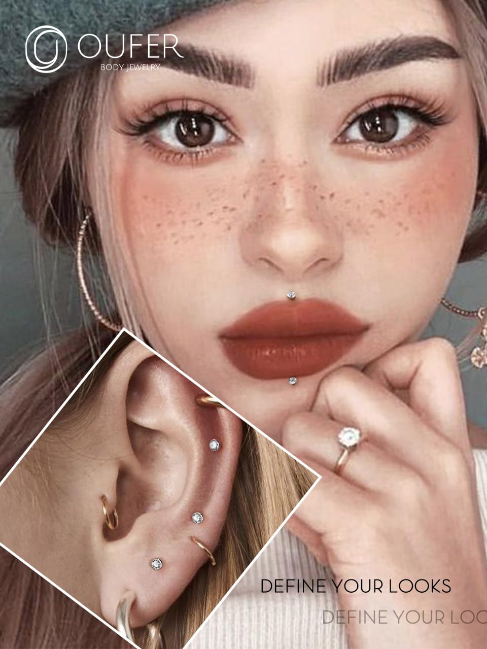 【Versatile Applications】: The flat back studs can be worn on different body piercing such as nose nostril cartilage helix tragus lobe labret medusa monroe piercing jewelry with different size replacement bars .
