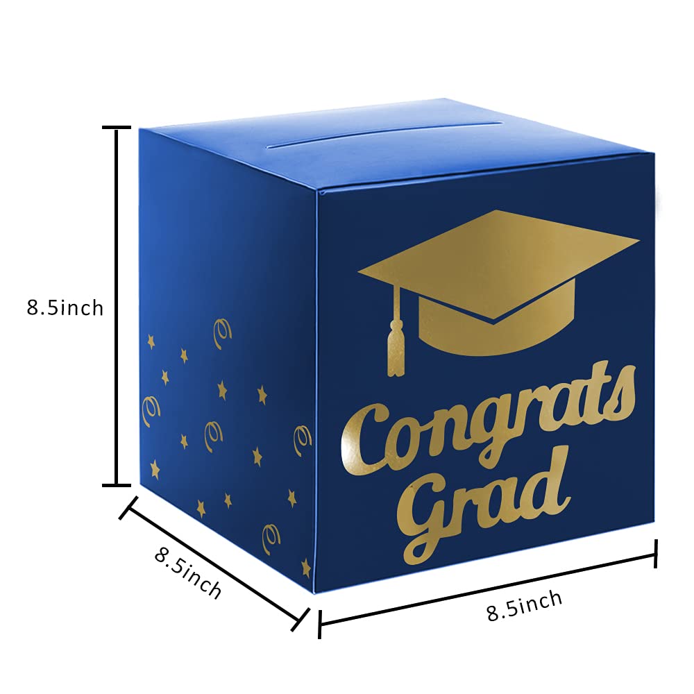 Dimensions: Our graduation card box holder measures 8.5 x 8.5 x 8.5 inches, the top slot measures 5.9 x 0.2 inches; It can carry lots of cards