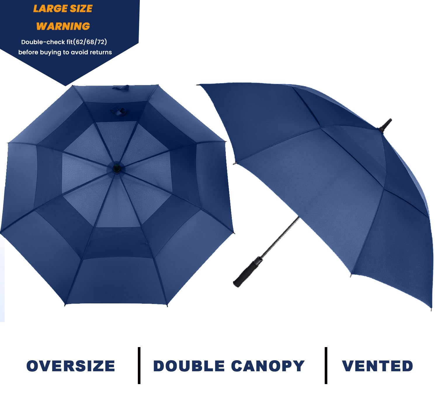 ☂️WINDPROOF GOLF UMBRELLA: The double-canopy design and fiberglass frame will ensure that your umbrella is VIRTUALLY WINDPROOF. Wind will simply not break it. The double-canopy design creates a vent during where wind can pass through, making the umbrella much easier to handle in harsh conditions.