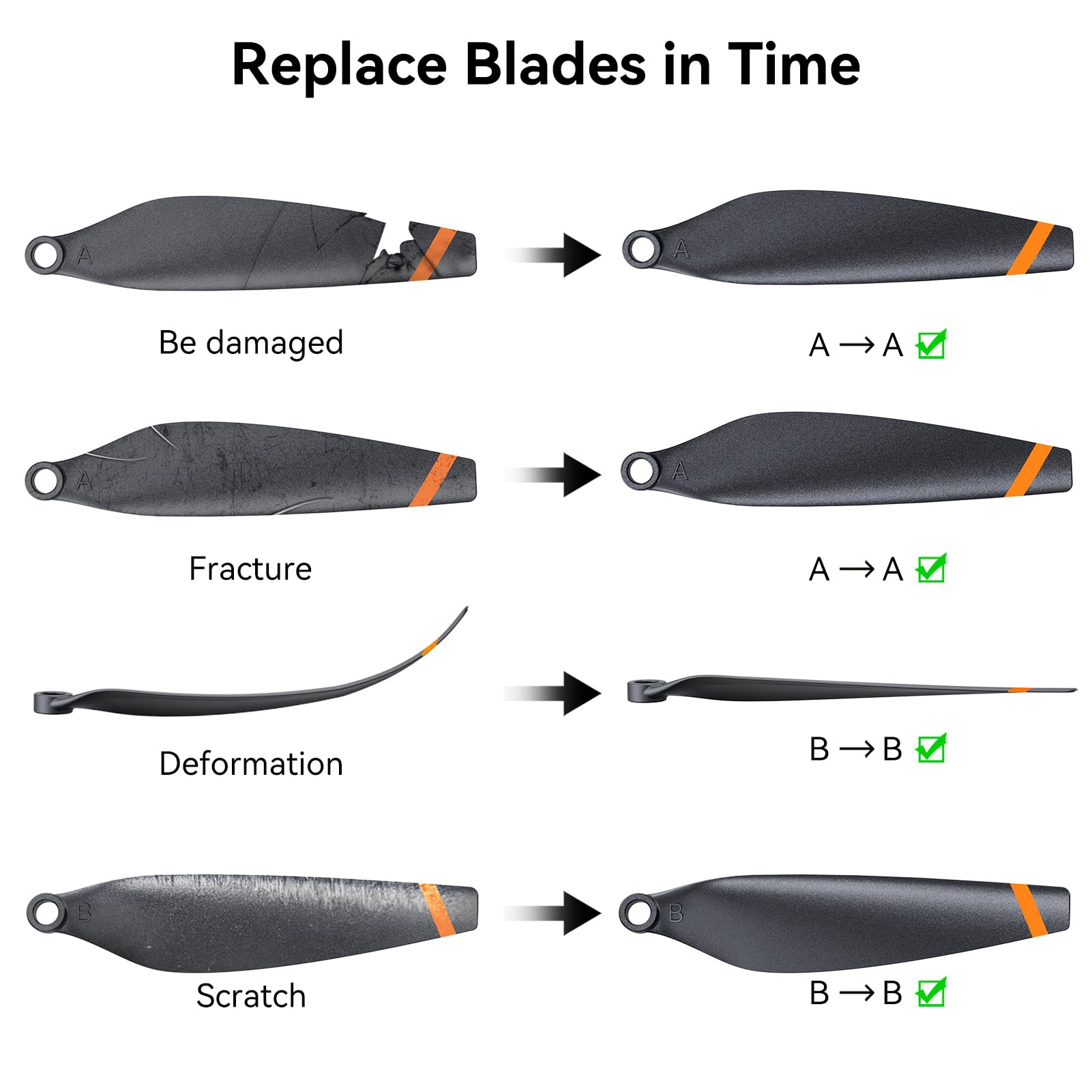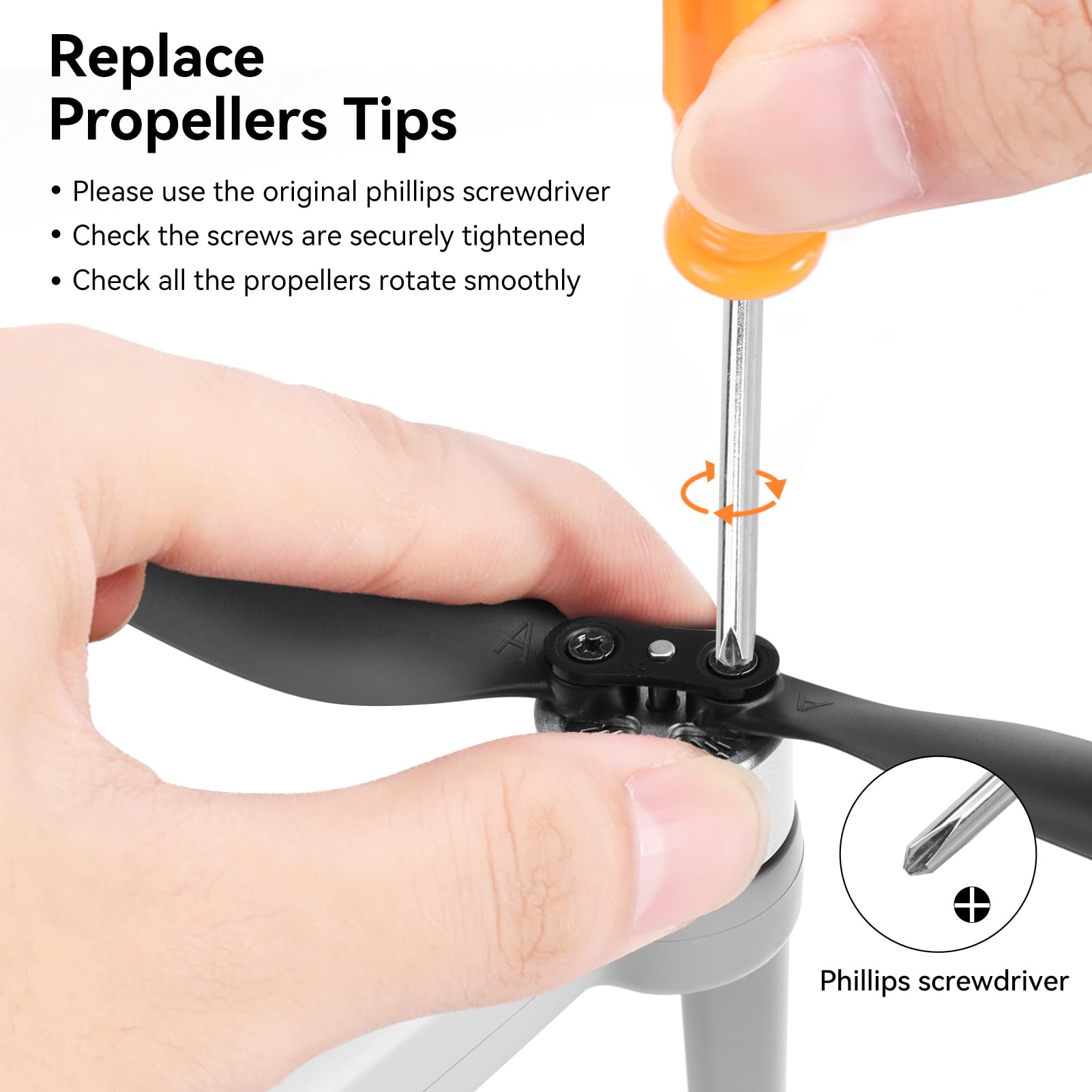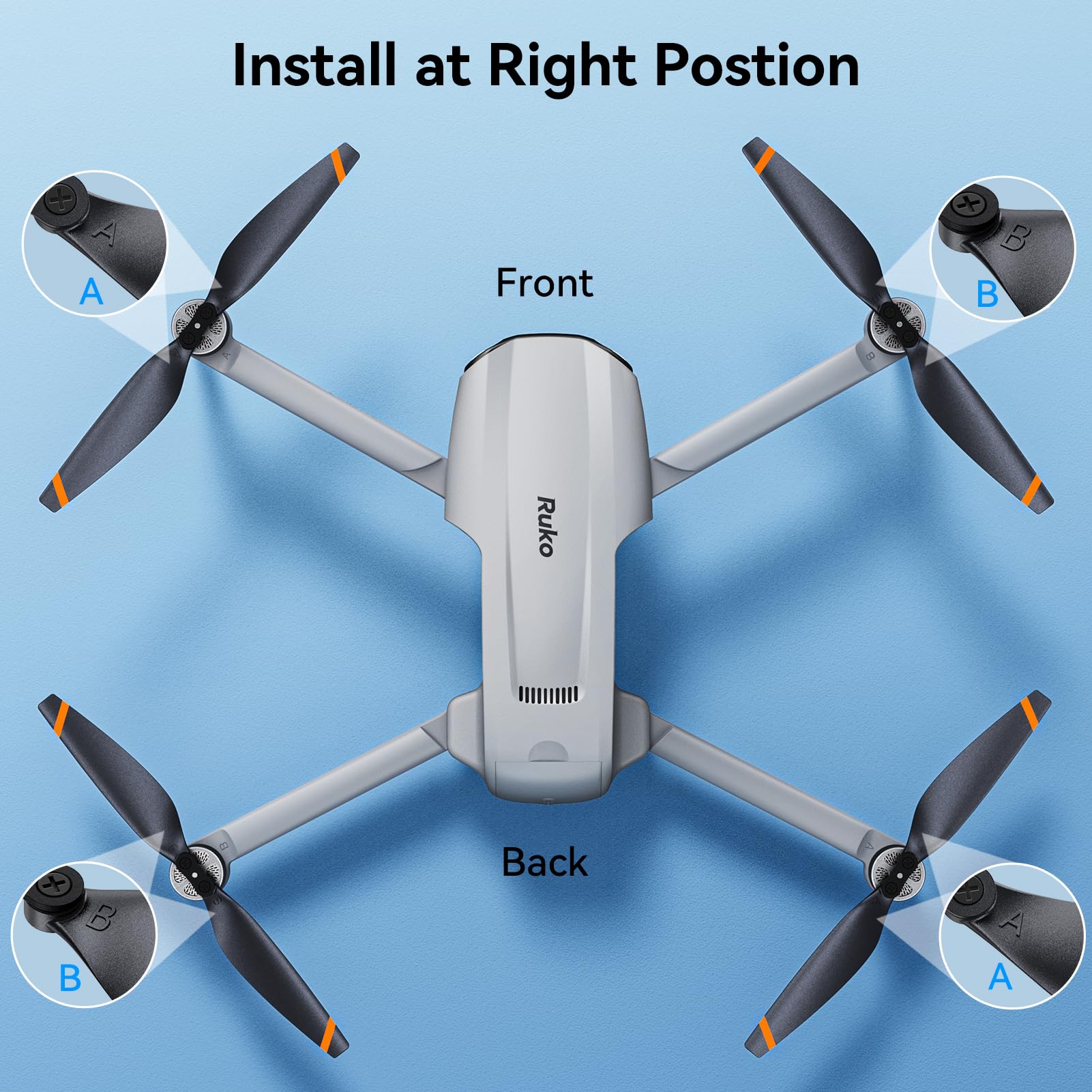 【Important Reminder】Please ensure the propellers are installed in the correct position by matching the labels. If you have any questions, our customer support team is here to help.