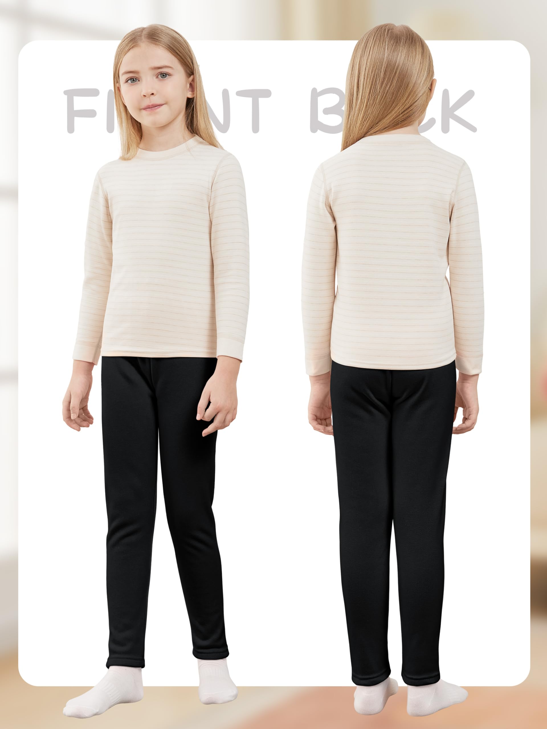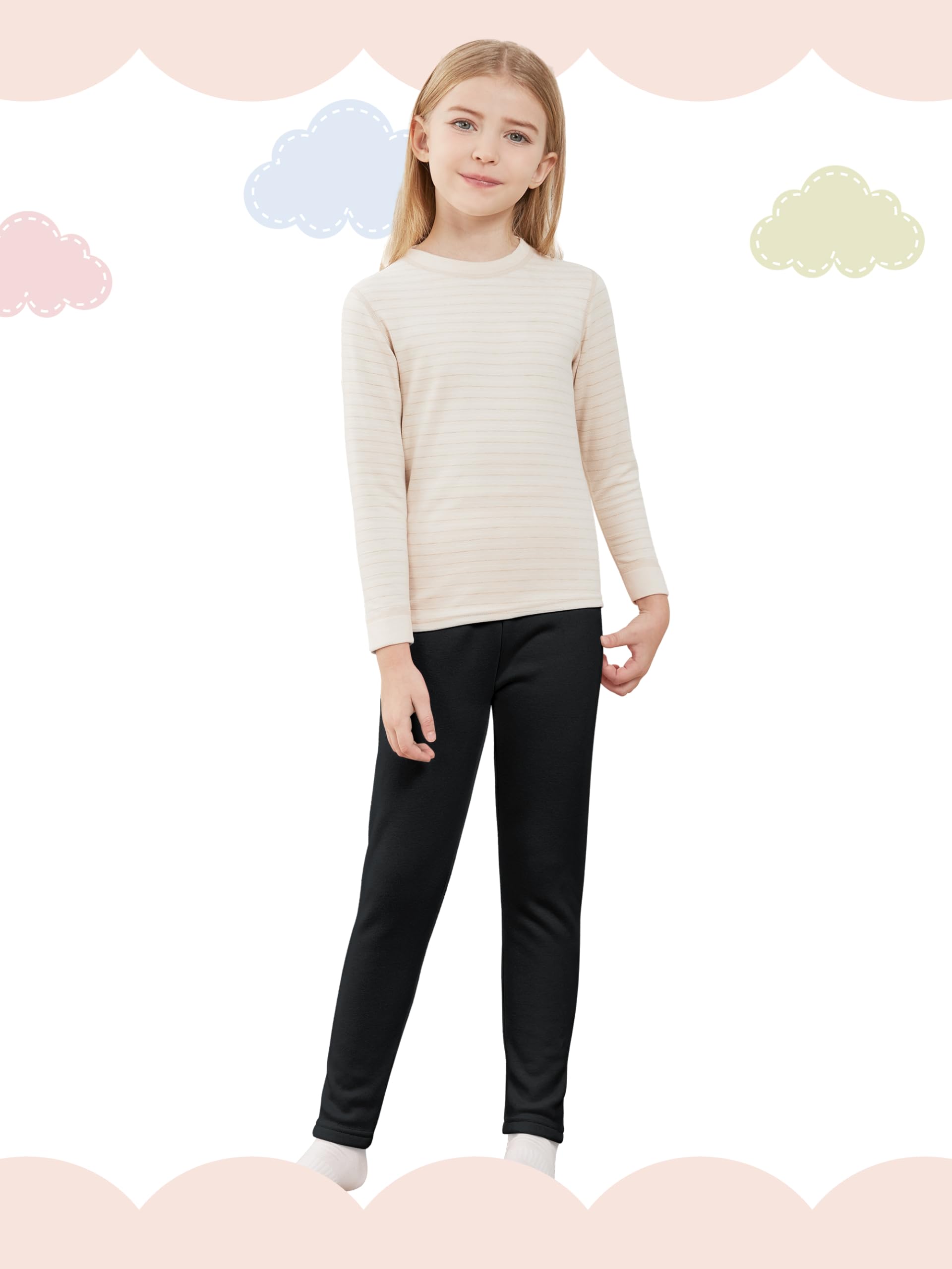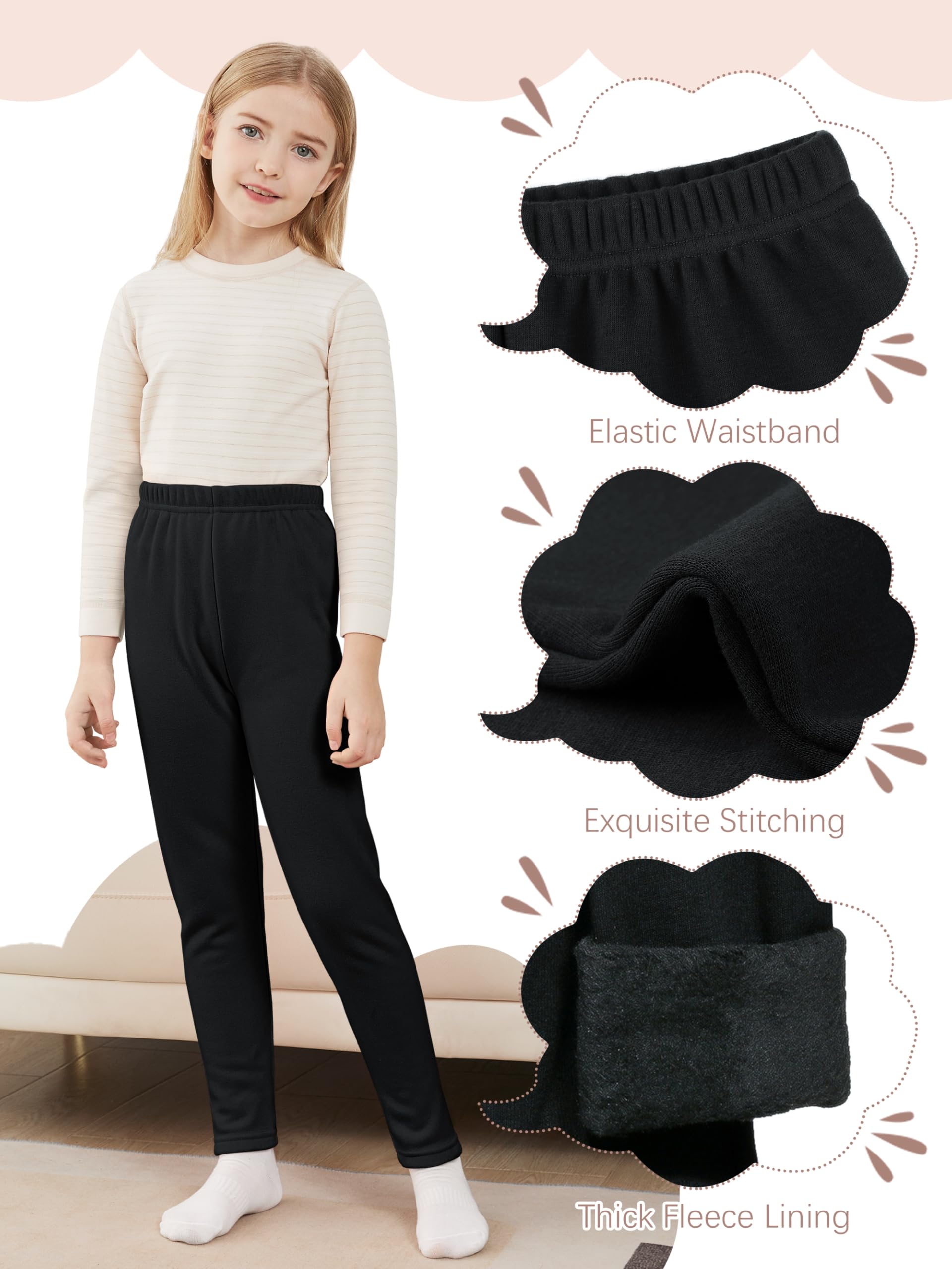 FLEECE LINED LEGGINGS: The outer layer of these warm leggings for girls is made of pure cotton and they are lined with fleece, making them elastic, soft, comfortable, and with excellent warmth.