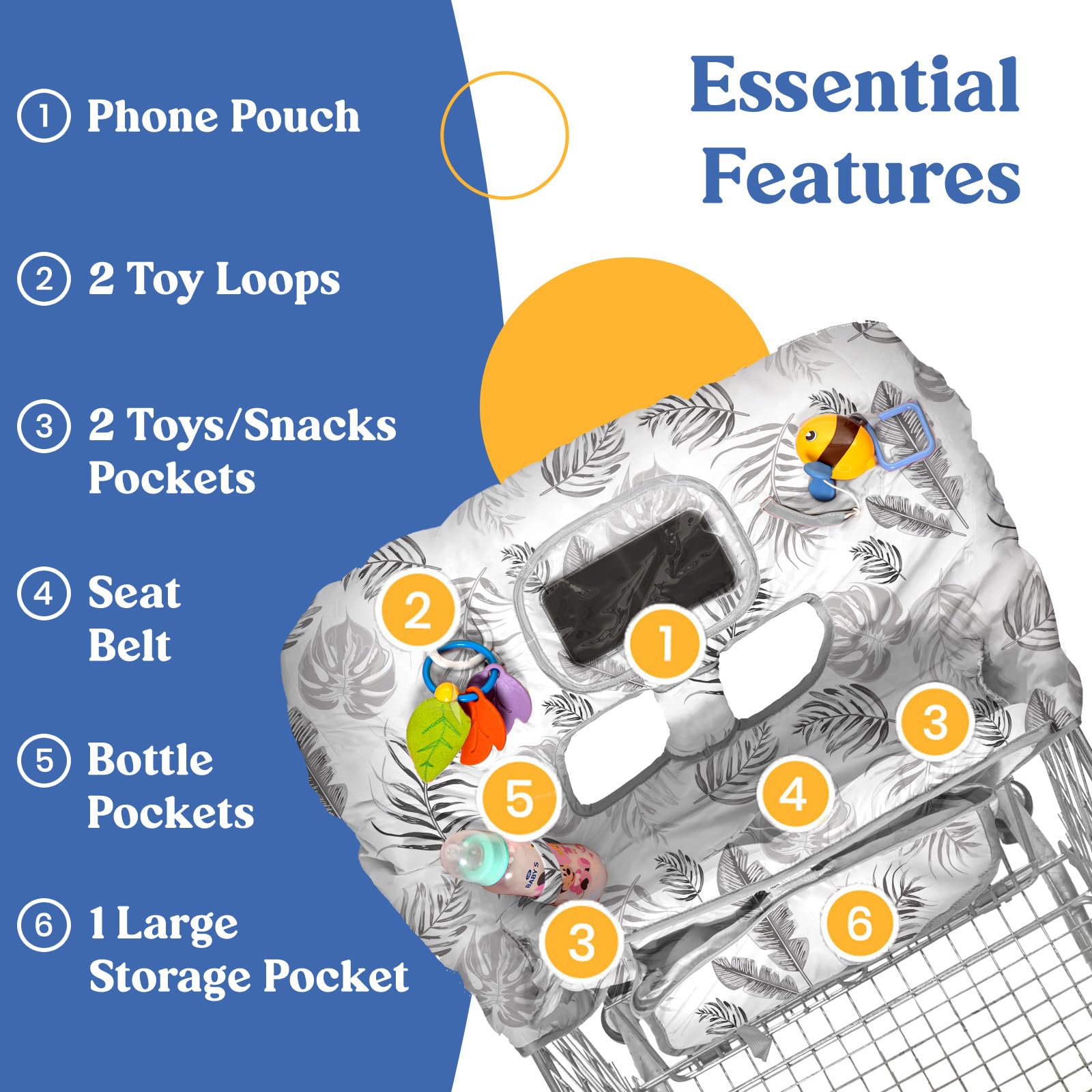 🛒Perfect Hygienic 100% COTTON Cover for Your Baby: Make your shopping spree with your child easy & worry-free! Our versatile seat cover helps you save time in wiping & have more time for shopping. It provides a 360-degree protection to keep your toddler's hands, body and mouth from touching that dirty cart and the same goes for you. An absolute way of keeping baby items clean! Our shopping cart cover for baby makes it an ideal part of your baby items list!
