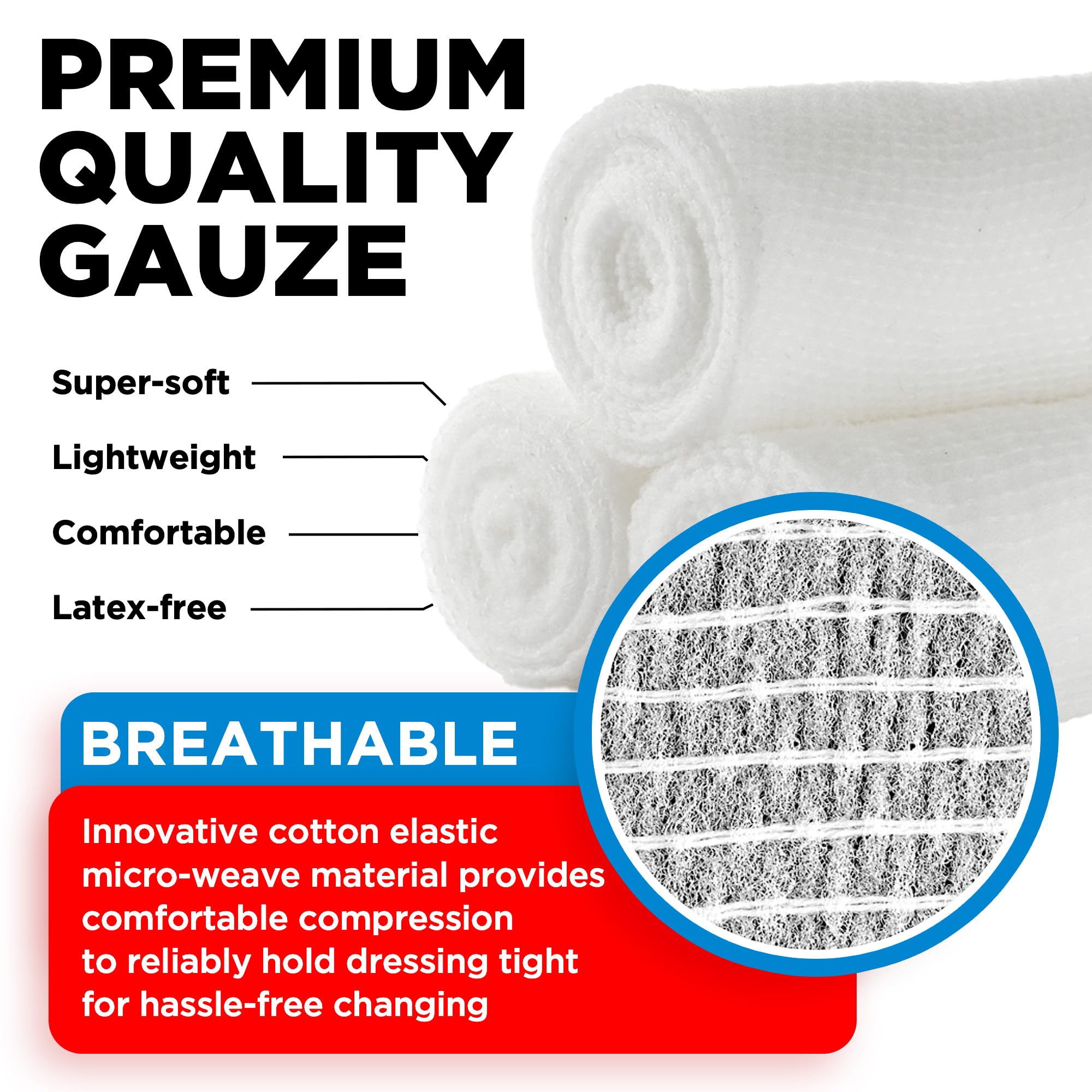 EASY TO USE — High-grade cotton-elastic material makes our gauze bandage rolls easier to apply than traditional roll gauze and allows for a lint-free dressing change.