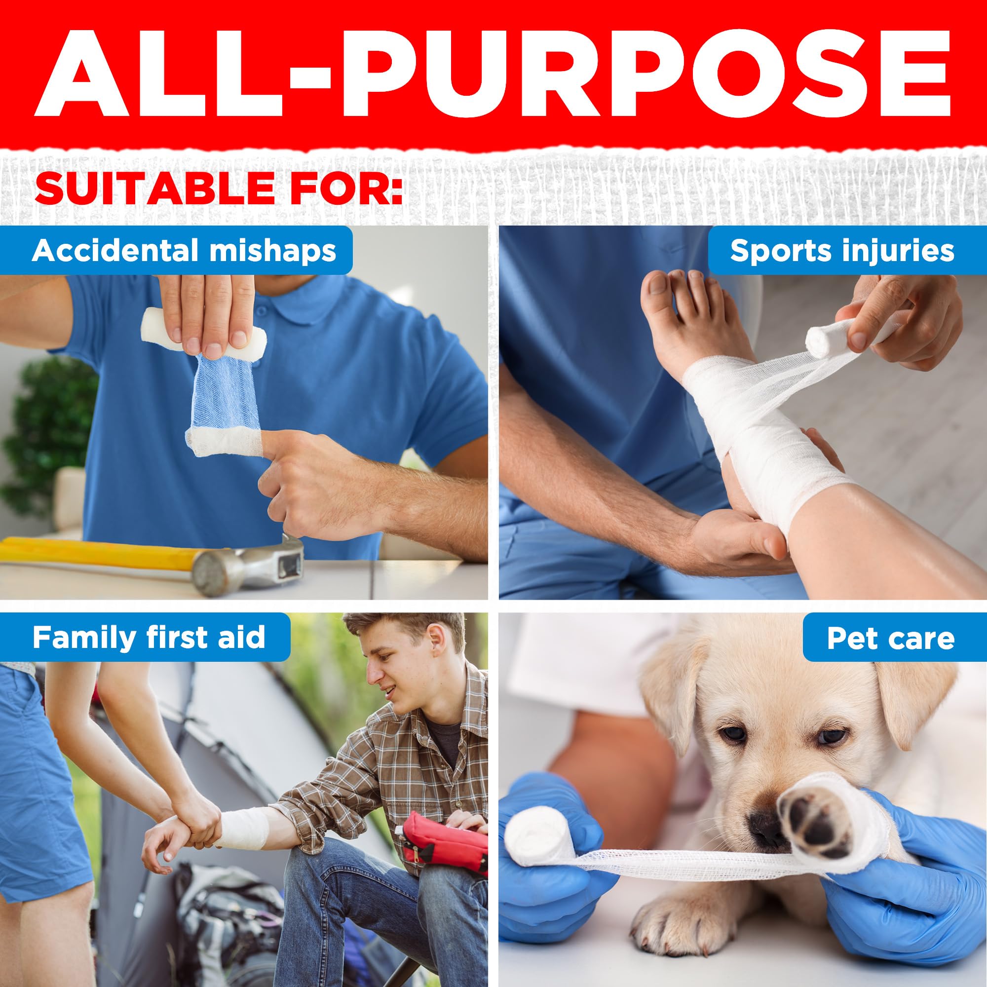 GREAT VALUE — Each package contains 24 medical gauze rolls 4 inches wide that allow you to keep some roller gauze in your home’s or car’s first-aid kit and be prepared for all of life’s surprises.