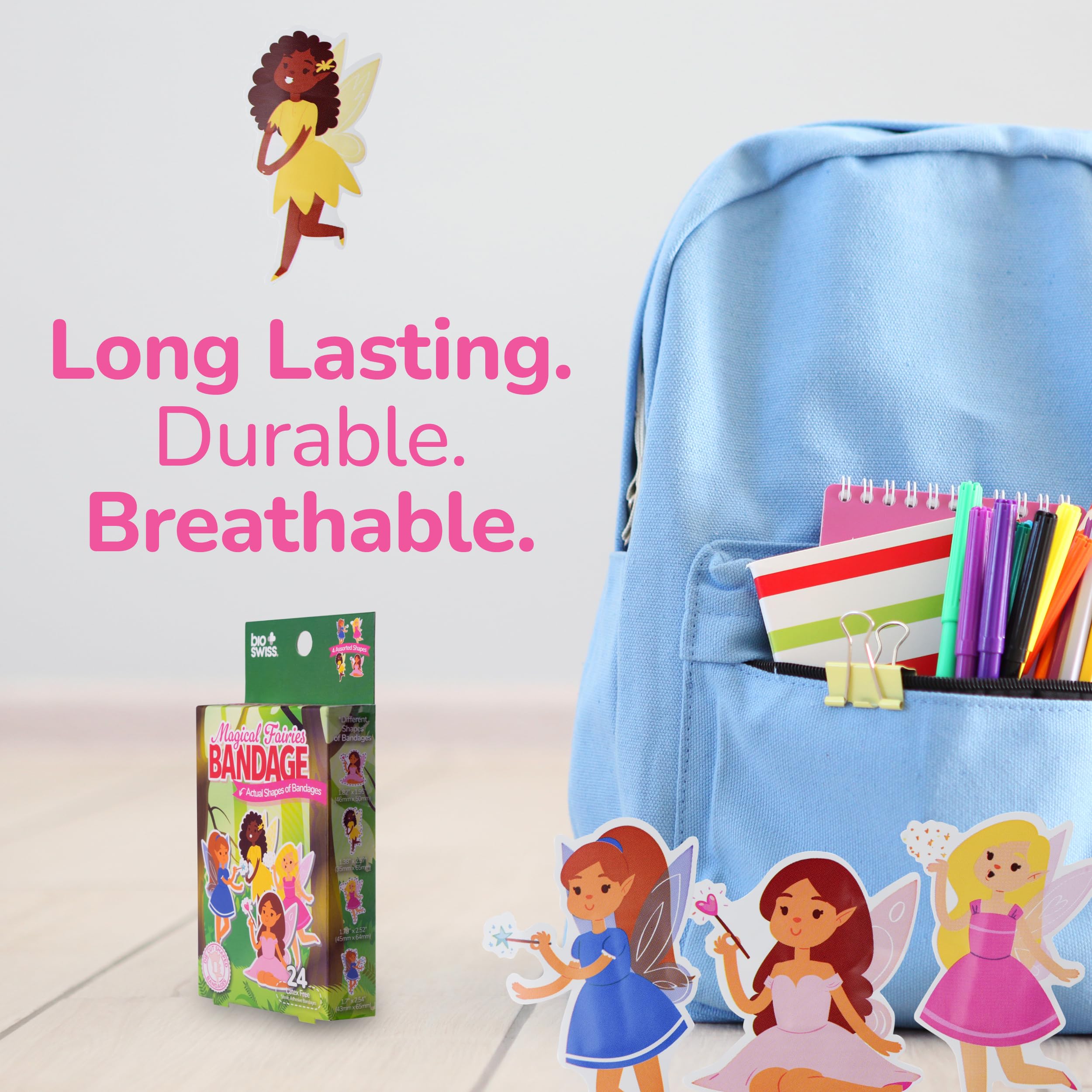 SAFE PACKAGING: These sterile Magic Fairy bandages come in cute and adorable packaging, and are individually wrapped for safe handling; small bandages help protect kids' sensitive wounds from coming into contact with dirt for first aid wound care