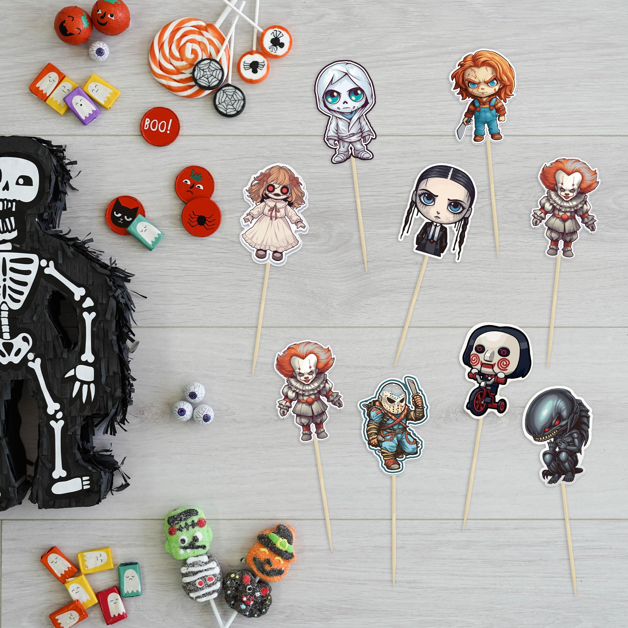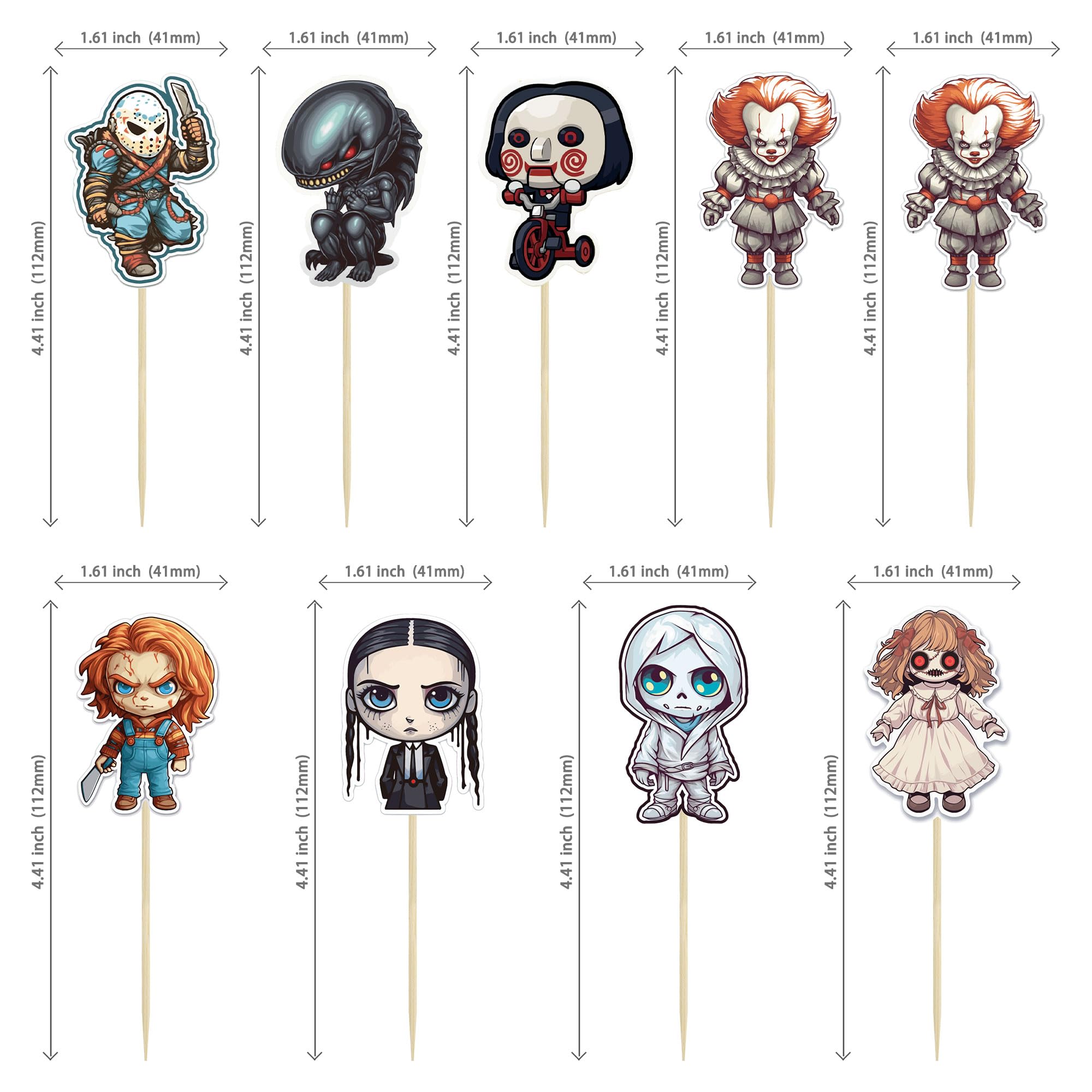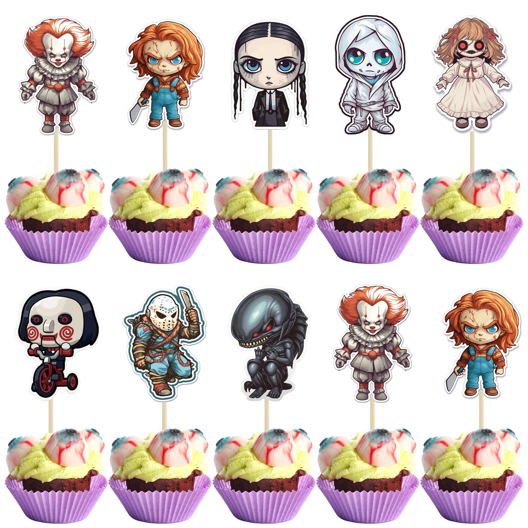 【Package Included】: 36Pcs Horror Classic Movie Cupcake Toppers. These Horror Classic Movie Cupcake Toppers are very nice and enough quantity for your use. Perfect for Halloween theme party!