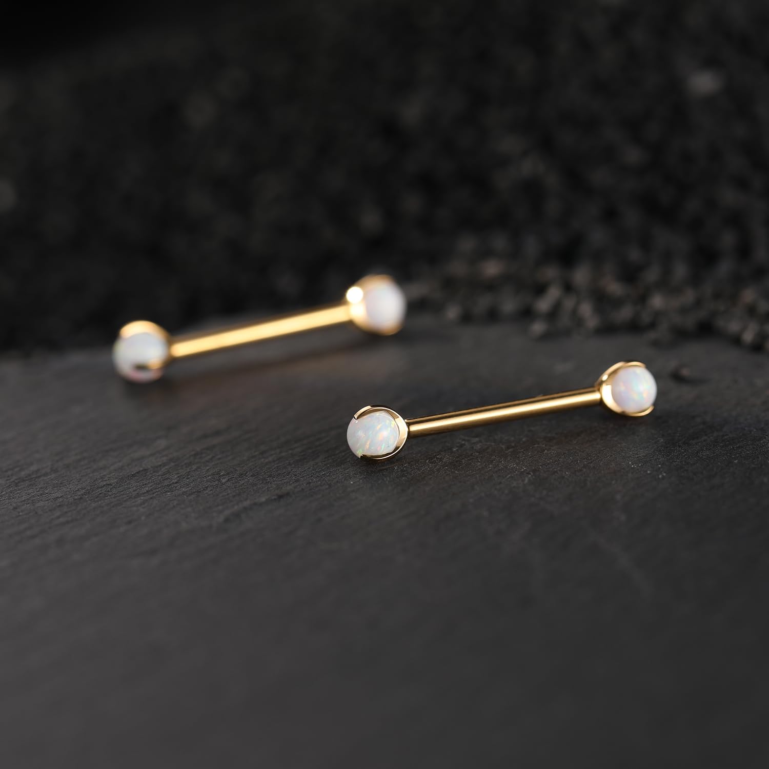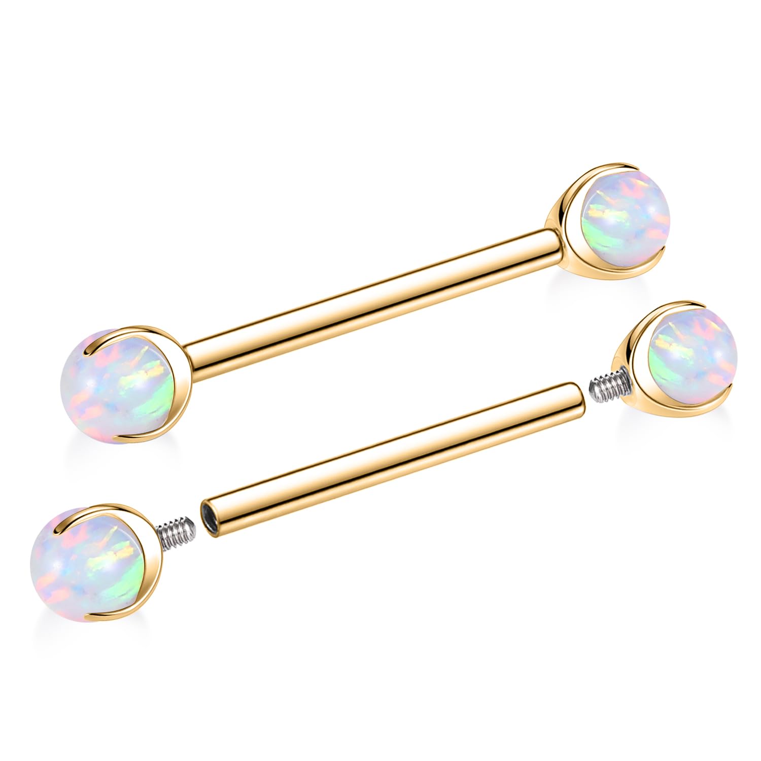 ✤SIZE&COLOR✤ Gauge: 14G (1.6mm); Nipple Barbell Length:9/16"(14mm); Ball Size: 4mm. Color:Gold with white opal.