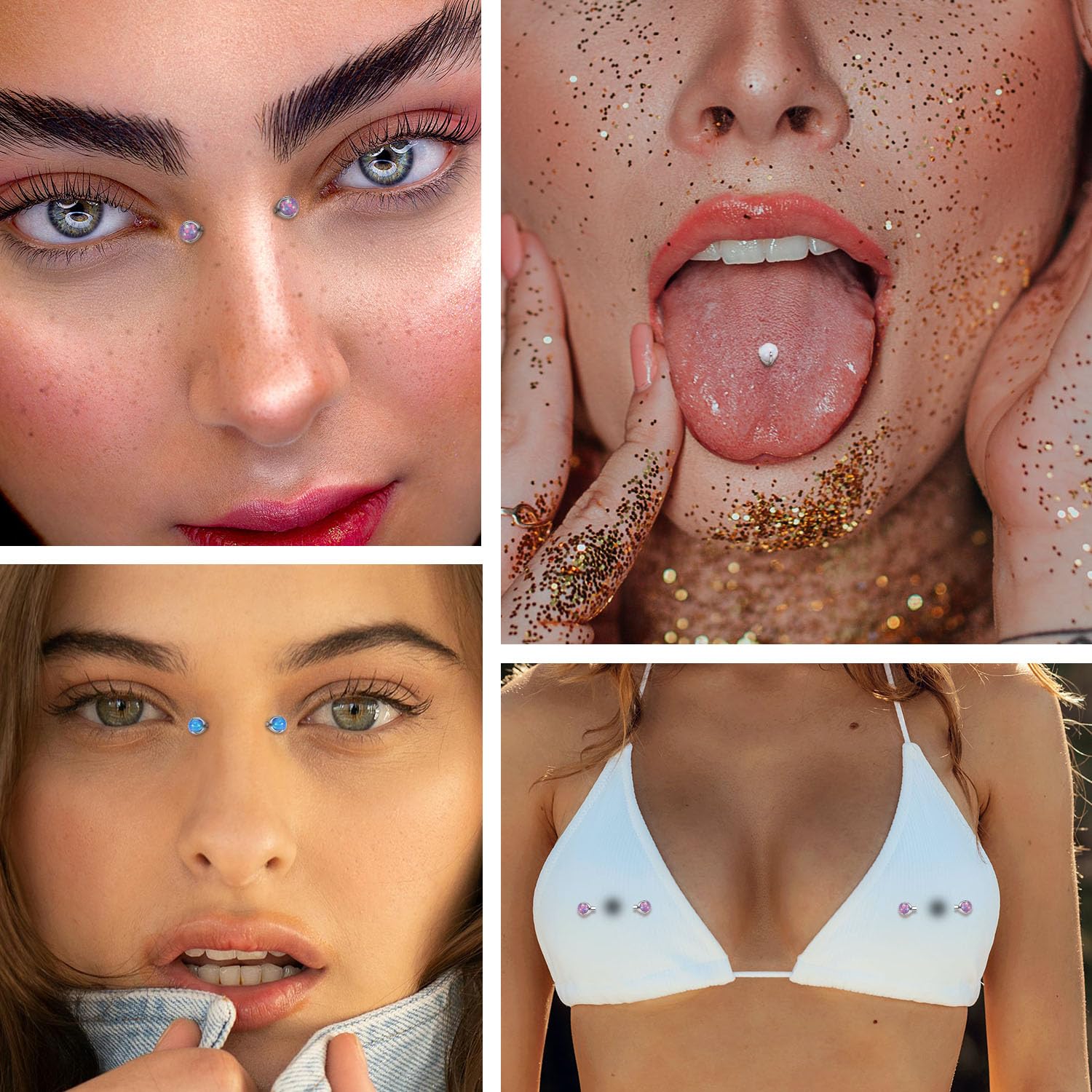 ✤Unique and Eye-catching Design✤ The nipple ring with opal ball on both side makes your nipple piercing more attractive. 2pcs nipple rings per order.
