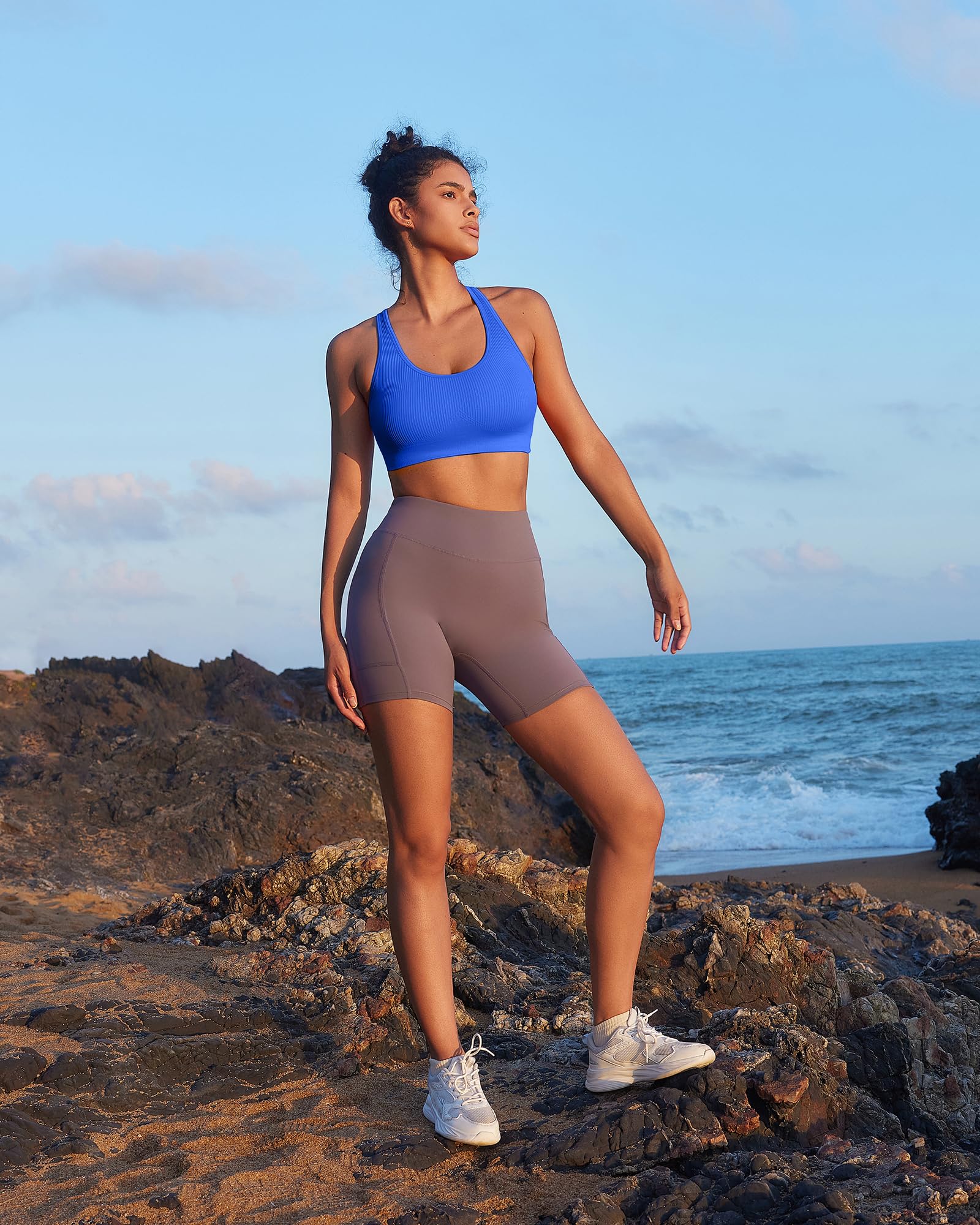 UNIQUE DESIGN:Criss Criss-cross back detailing gives the V-neck sports bras its signature style. But it doesn't just look good,it's hard working.Heat transfer tech,a lined shelf bra,and the sports bra for women wrapped in durably soft performance stretch fabric keep you comfy and supported.The cotton-like meterial,soft and comfortable to wear.Stretch Fit Womens Sports Bras.