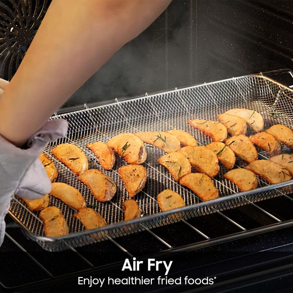 No preheat Air Fry is a healthier way to prepare your favorite fried foods right in your oven with little to no oil, Air Fry tray not included, As compared to deep frying