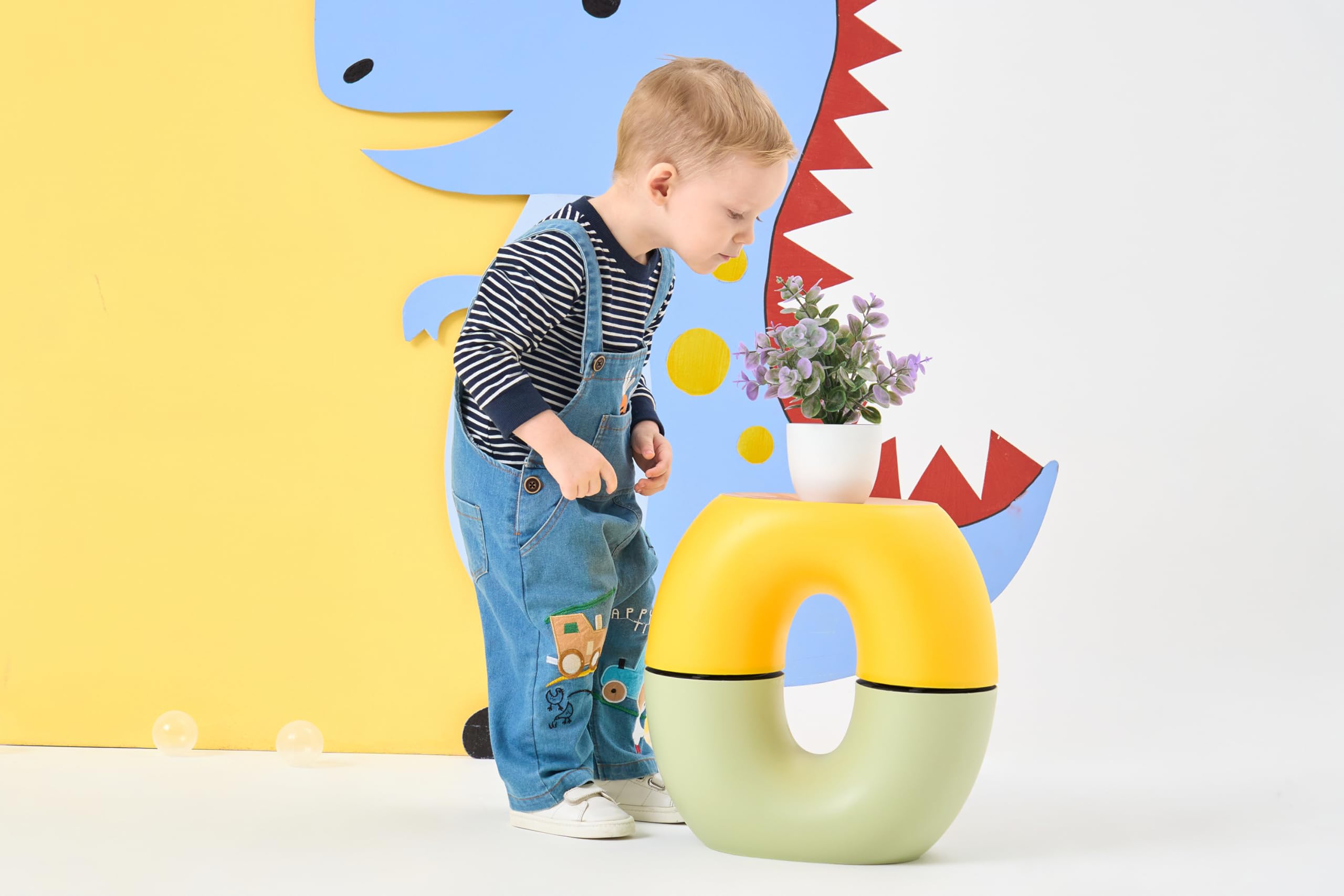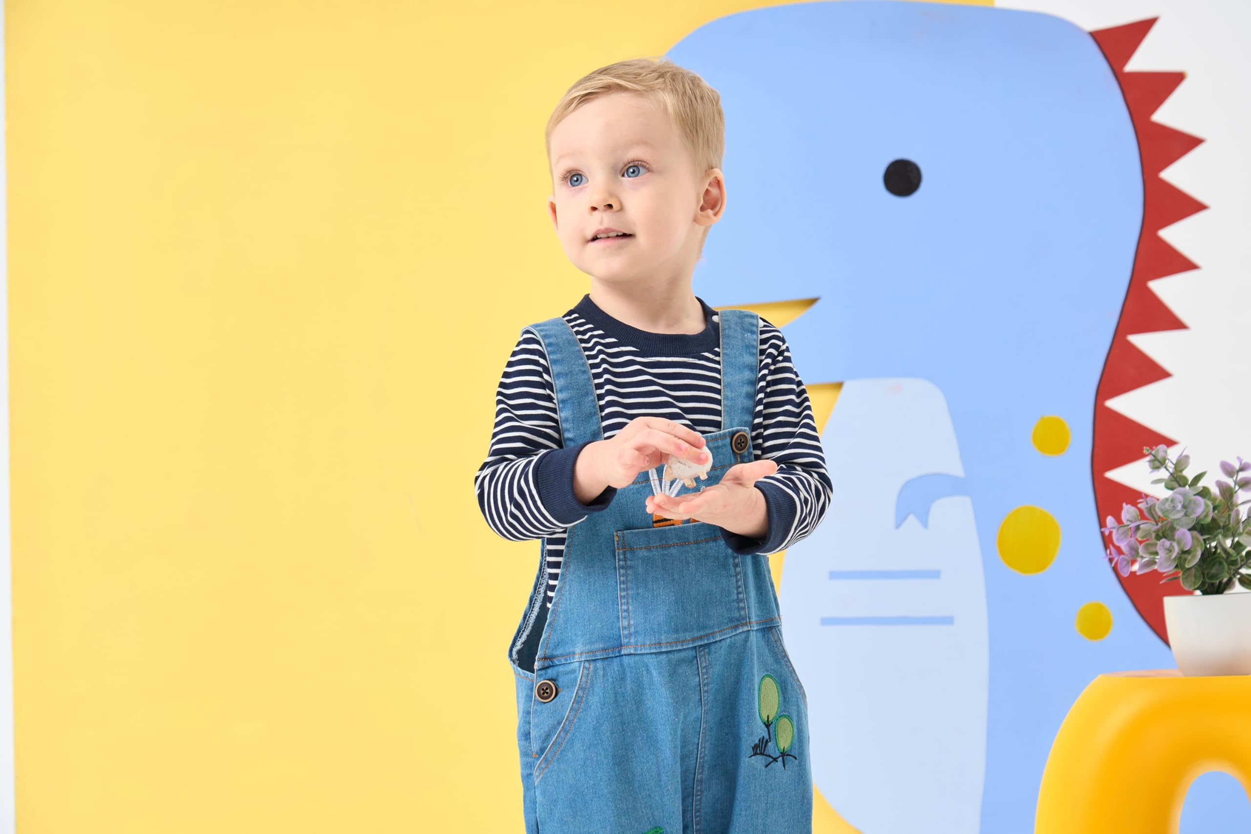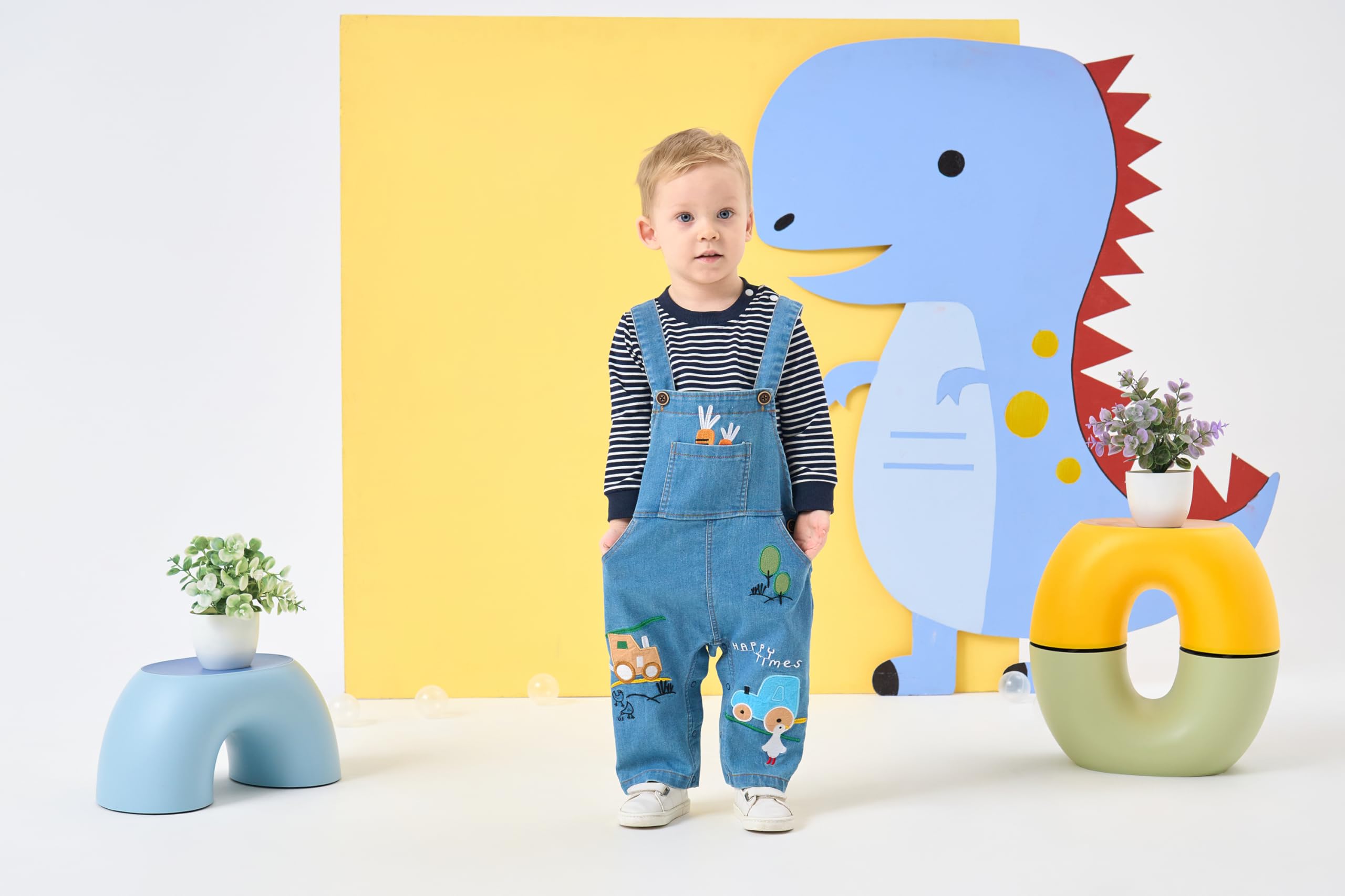 Little boy cute clothes,1 stripe T-shirt and 1 pieces of denim overalls