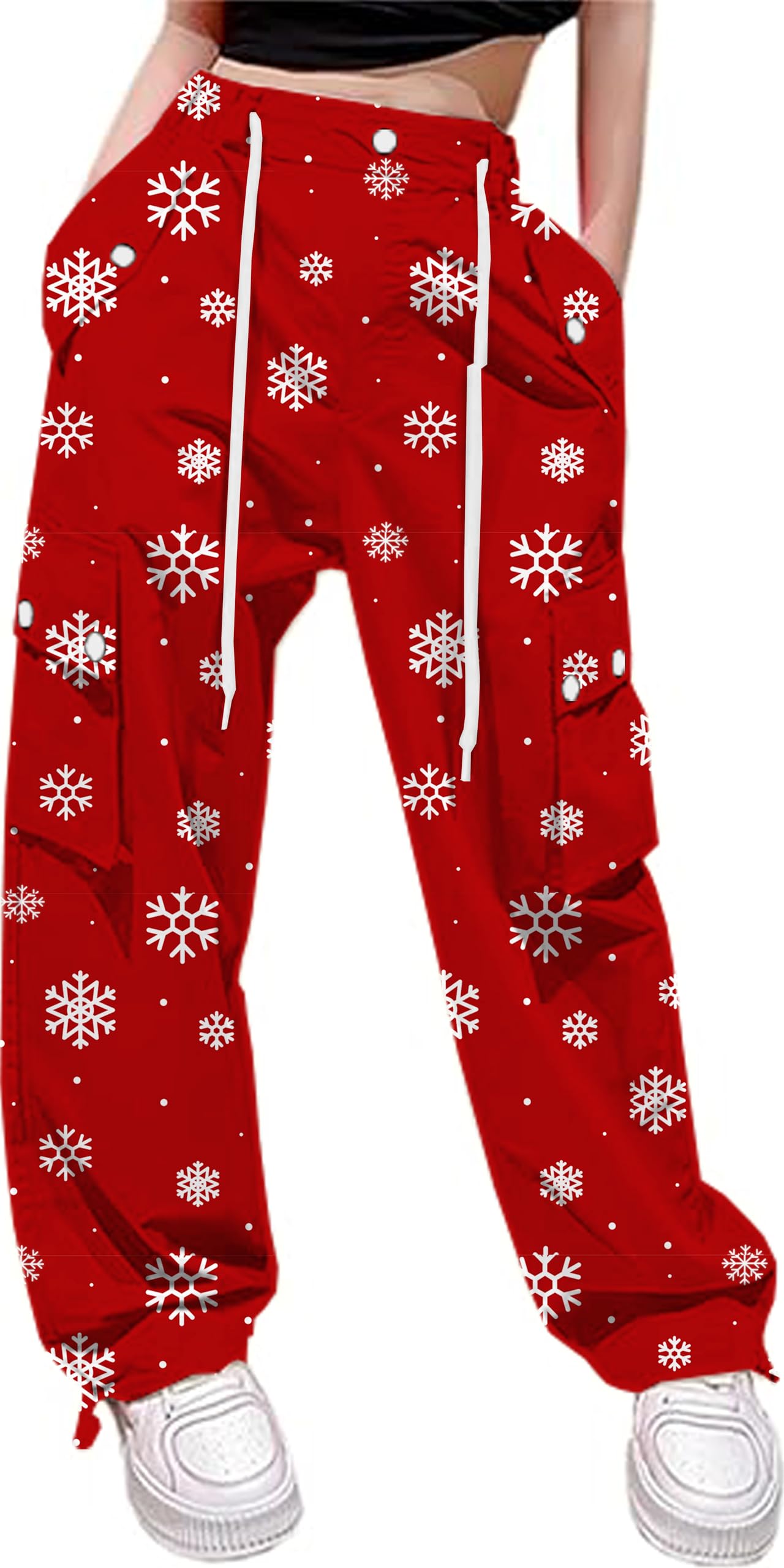 Design:Y2K cargo pants featuring a baggy oversized silhouette with color-matched elastic drawstring waist, adjustable ankle drawstring cuffs, ankle-length cut, and 4 functional cargo pockets for essentials storage.