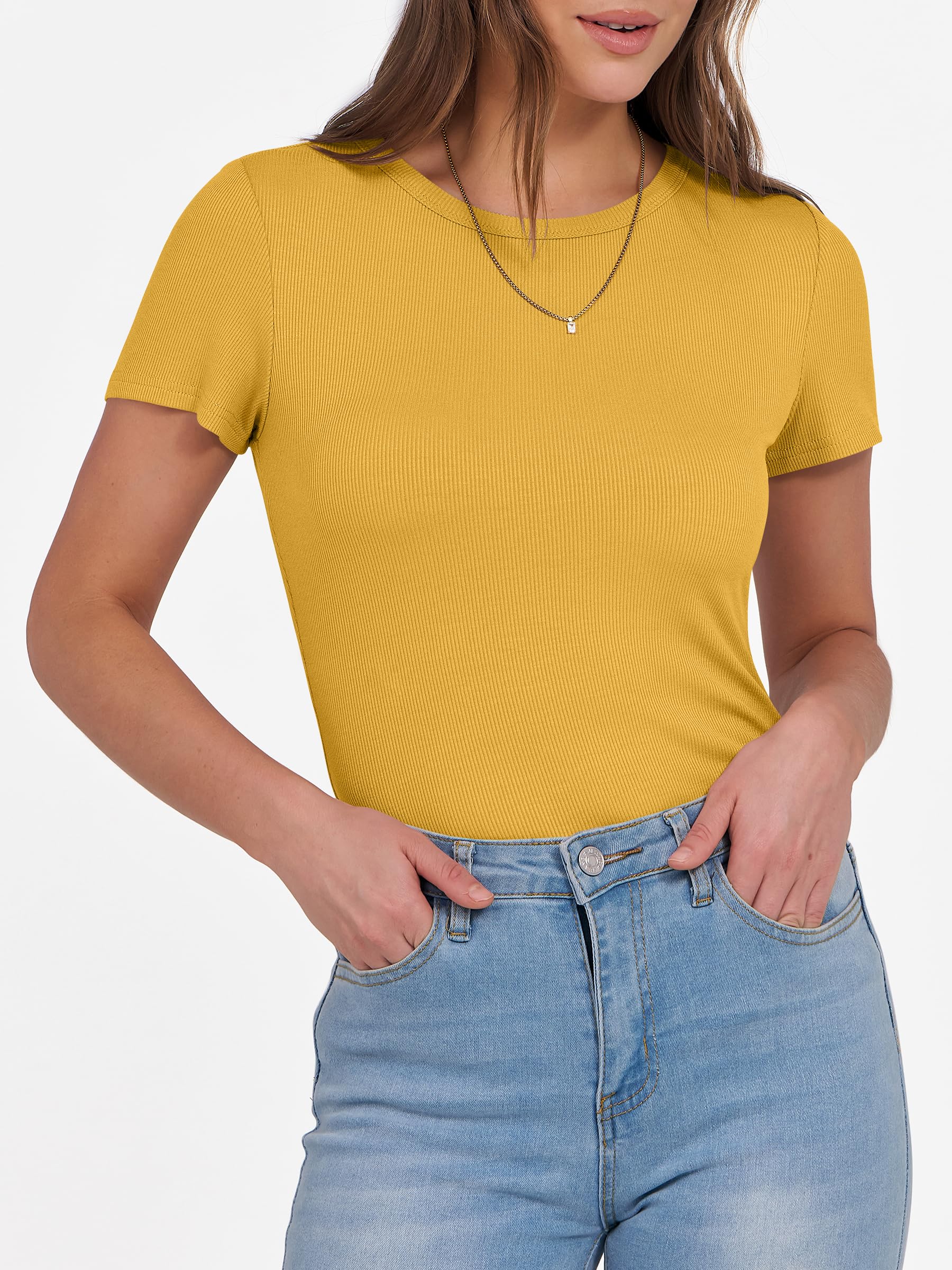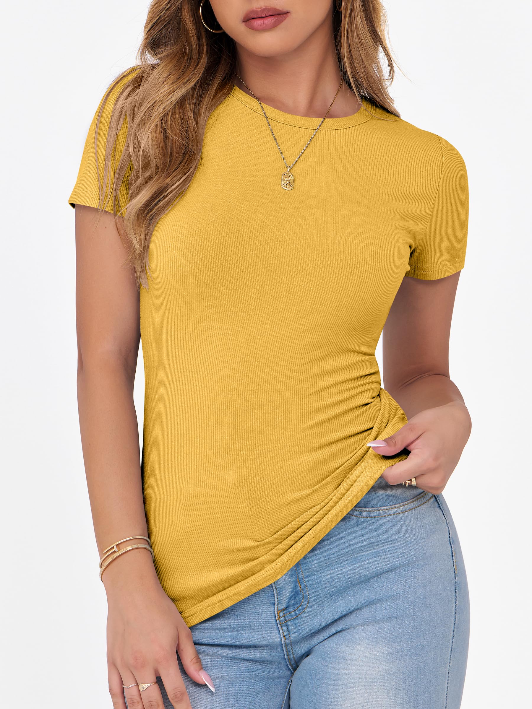 Features - Get summer-ready with our comfy and soft knitted fabric, perfect for all occasions. Our short sleeve crew neck design is versatile - wear it to school, the gym, the beach, or casual daily wear. The slim fit highlights your perfect figure, making you feel confident and stylish wherever you go. Comfortable, lightweight, and oh-so-flattering, our basic summer slim tee is an essential addition to your wardrobe.