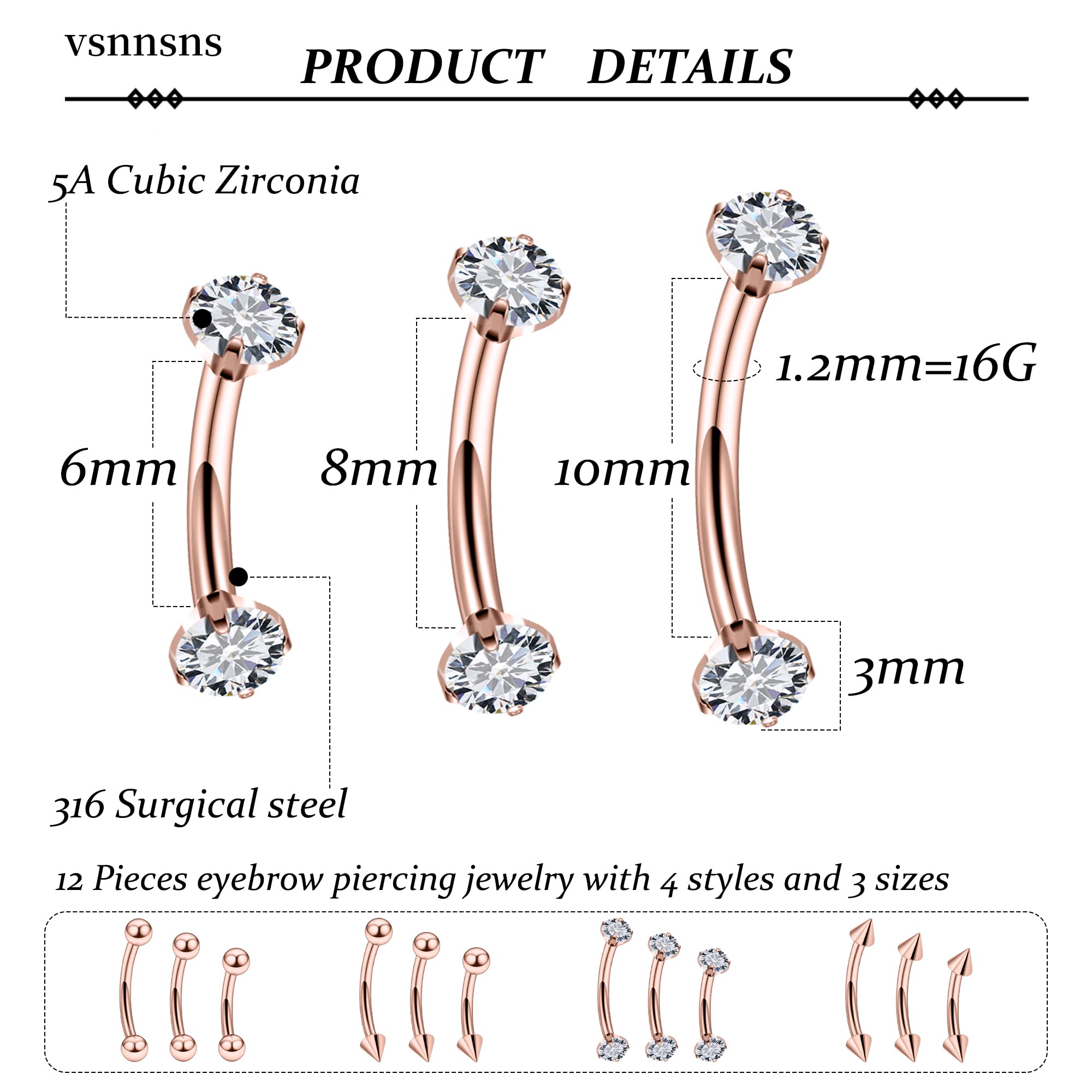 [SUITABLE FOR USE]: These Eyebrow Piercing Jewelry Can Be Used For Eyebrow Rings, Eyebrow Jewelry, Eyebrow Piercing, Rook Piercing Jewelry, Daith Piercing Jewelry, Vertical Labret Lip Jewelry, Small Belly Button Ring, Rook Earrings, Daith Earrings.