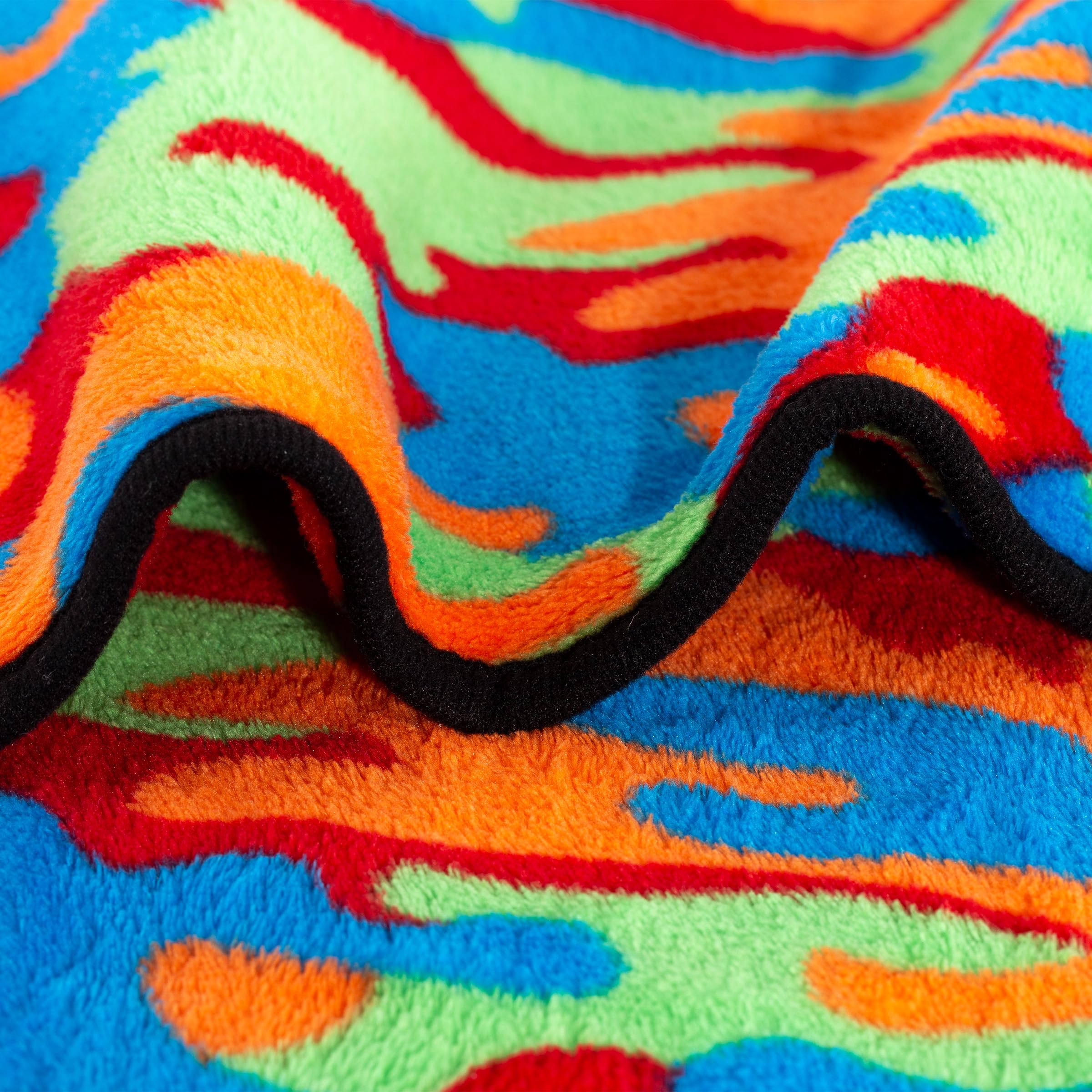PRODUCT DETAILS - Materials: Polyester Velvet Fleece. Dimensions: (L) 55” x (W) 43”. Blanket for Car. Powered by 12V Auxiliary Power Outlet in RV, Automobile, or Truck. Color: Blue, Orange, Green, and Red Camo.