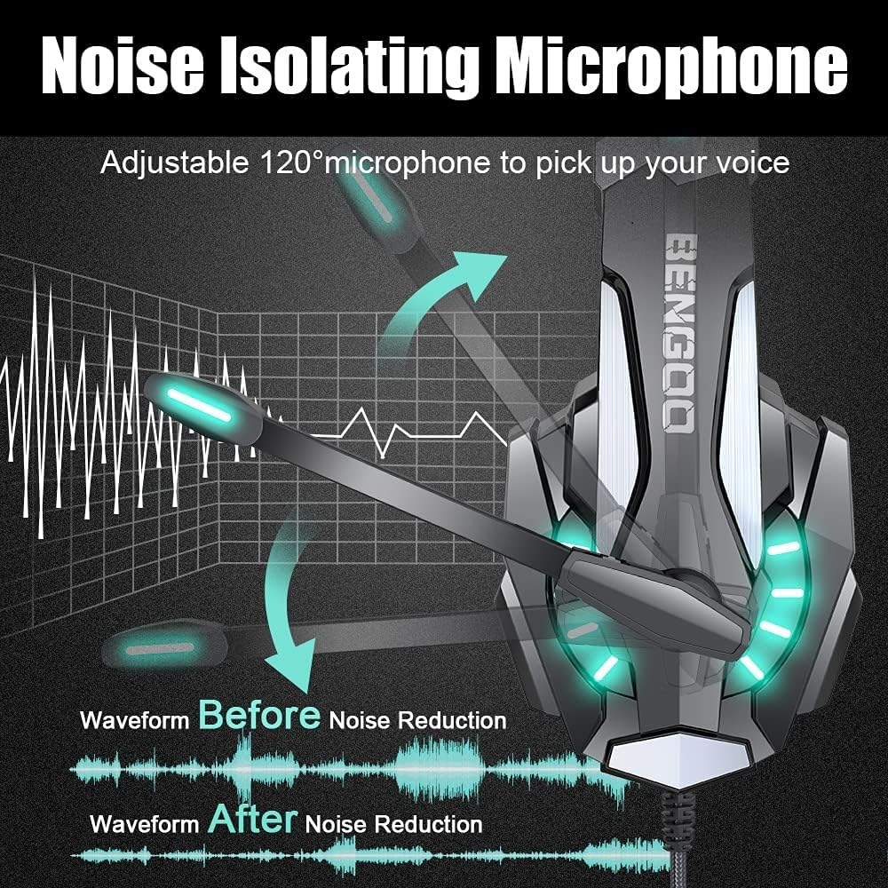 【Noise Isolating Microphone】Headset integrated onmi-directional microphone can transmits high quality communication with its premium noise-concellng feature, can pick up sounds with great sensitivity and remove the noise, which enables you clearly deliver or receive messages while you are in a game. Long flexible mic design very convenient to adjust angle of the microphone.
