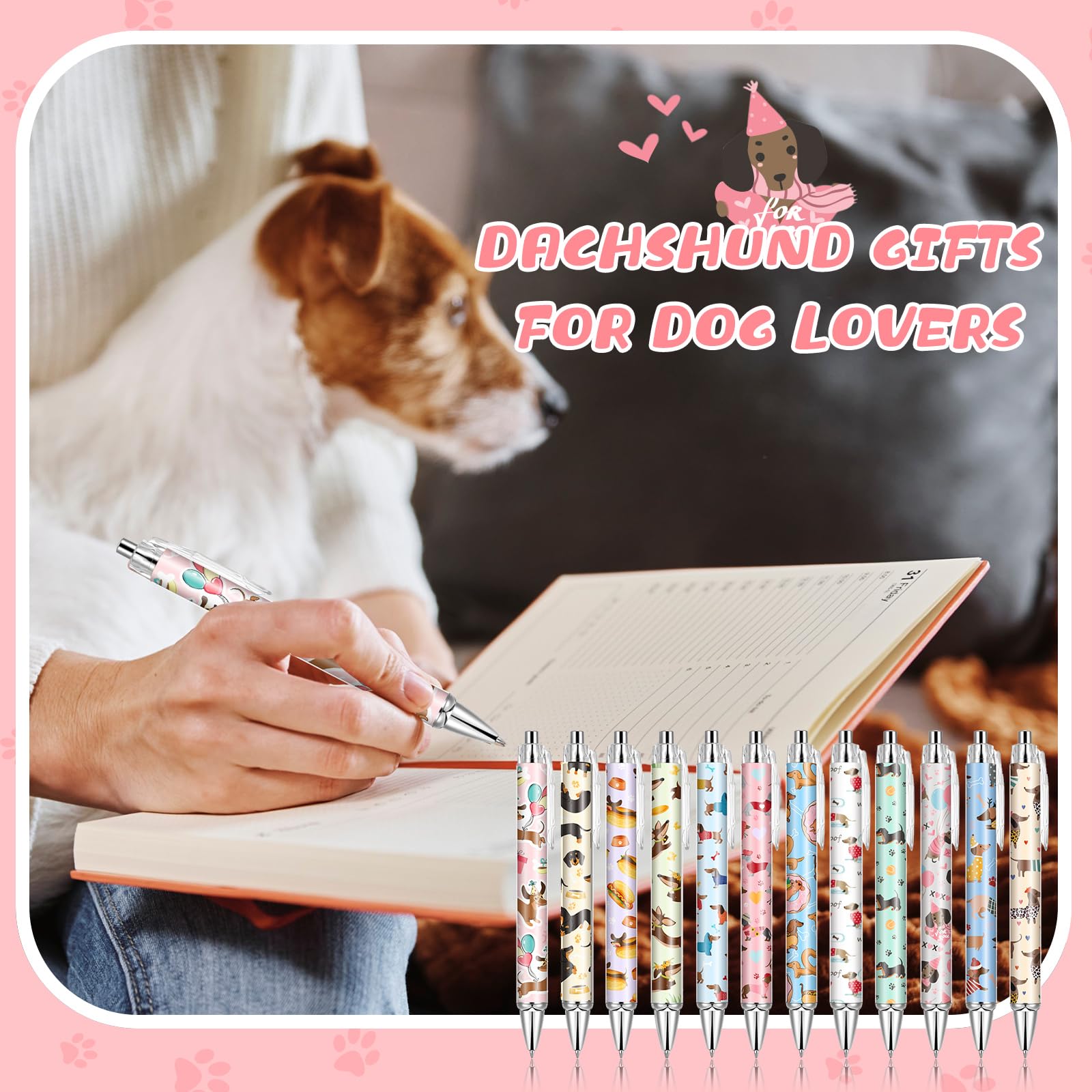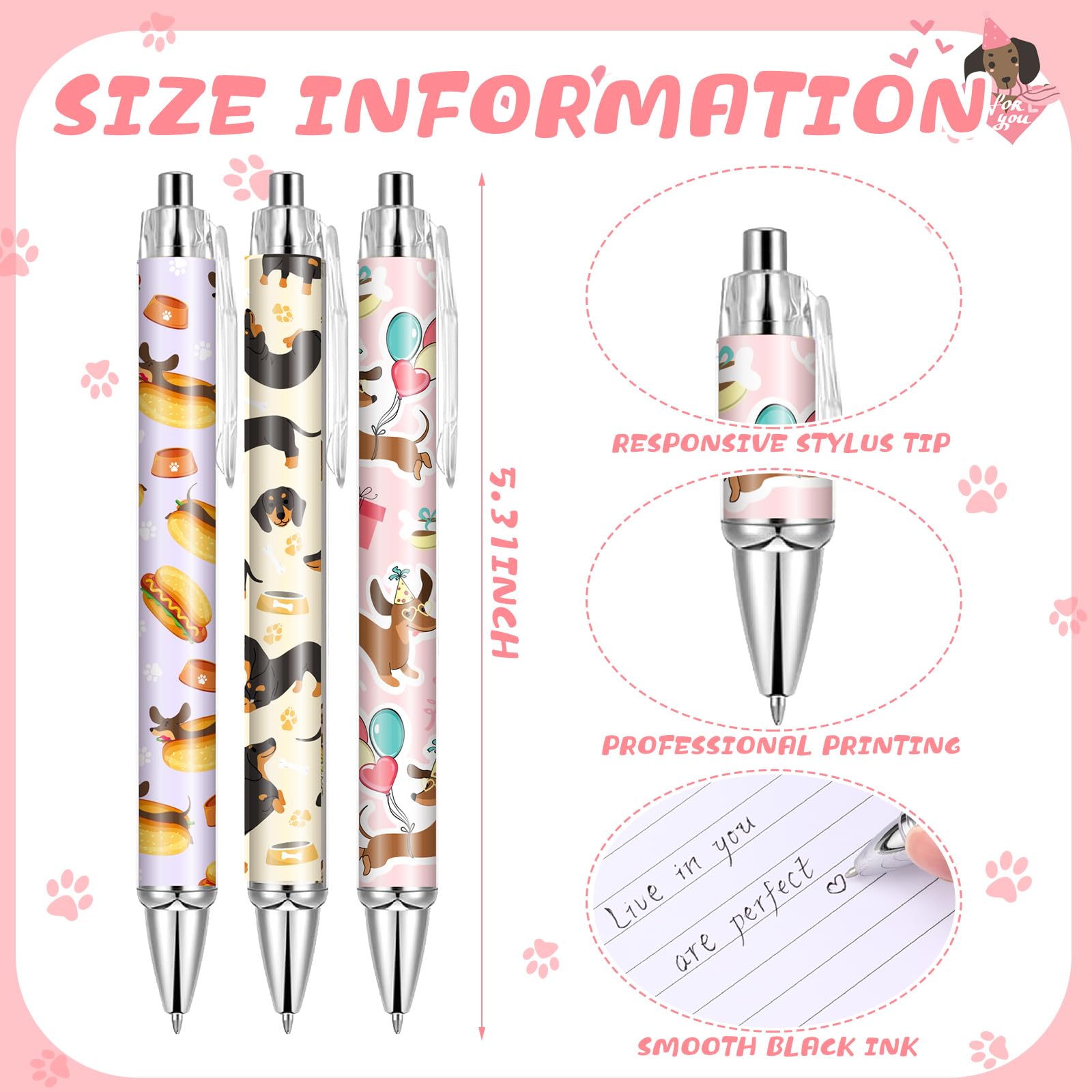 Dachshund Theme Gift: our pens designed with various cute dachshund elements, including dachshund, pink balloon, and more; Suitable as party gifts, party supplies, a nice gift for women, friends, colleagues, and more