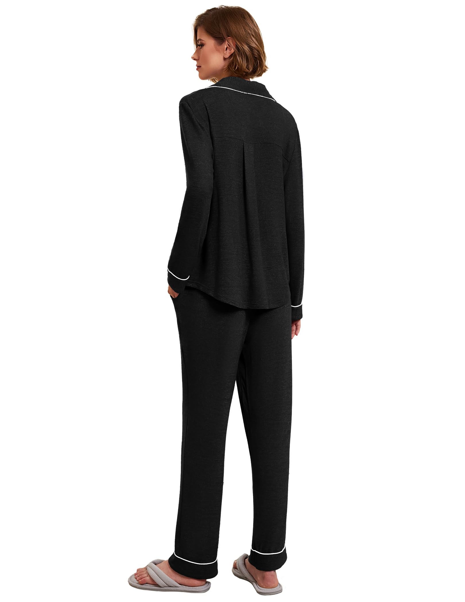 Features:Two Piece Pajama Set featuring classic and casual loungewear style.Long sleeve sleepwear top and long pajama pants set.High quality material and this sleep set with superior stitching and perfectly-lined hems. Breathable and Comfy sleepwear set