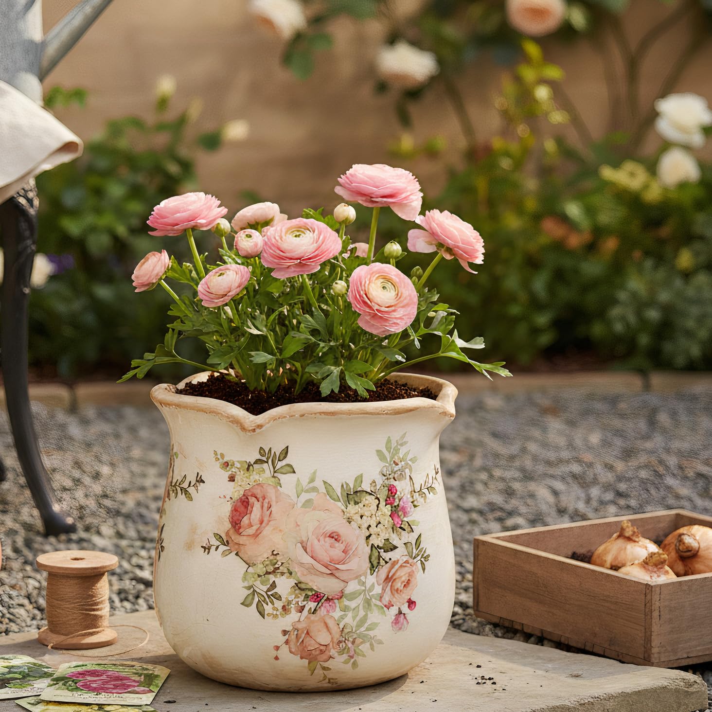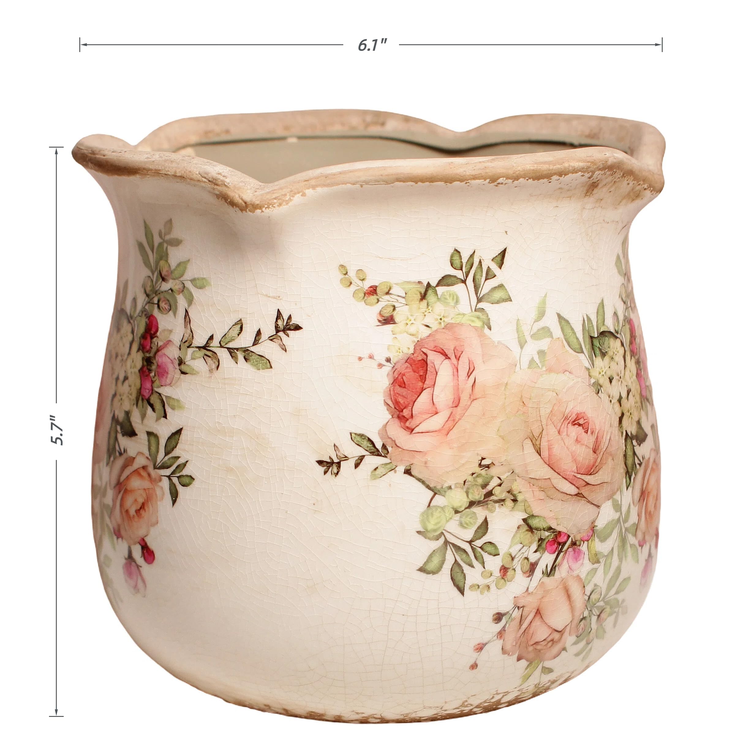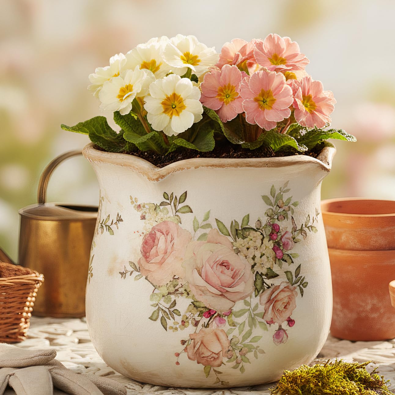 VINTAGE FLOWER POT WITH DISTRESSED DETAILS: The slightly distressed pattern is designed to create a rustic, shabby chic aesthetic that adds character and warmth to your home décor.