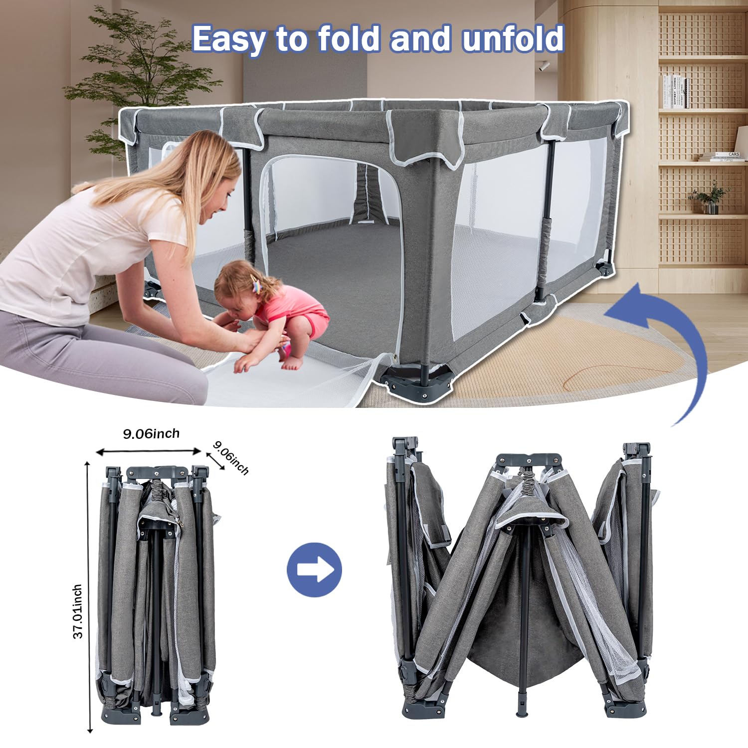 Conveniently baby playpen foldable: This foldable baby toy pen for infants and toddlers can be quickly assembled and disassembled by one person without the need for tools, making it easy to store and carry when not in use