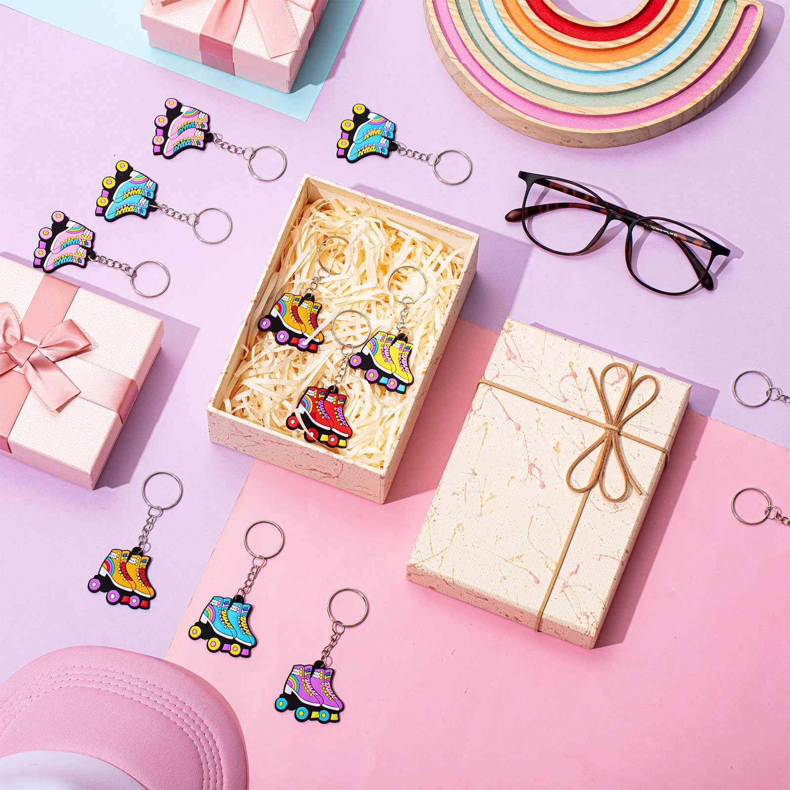 Suitable for Various Parties: this roller skating party supplies are versatile, fitting for various occasions; Whether planning a roller skating party, a retro 80s and 90s themed bash, a Christmas gathering, or a Halloween celebration, these keychains will add an exciting touch to your decor and party favors