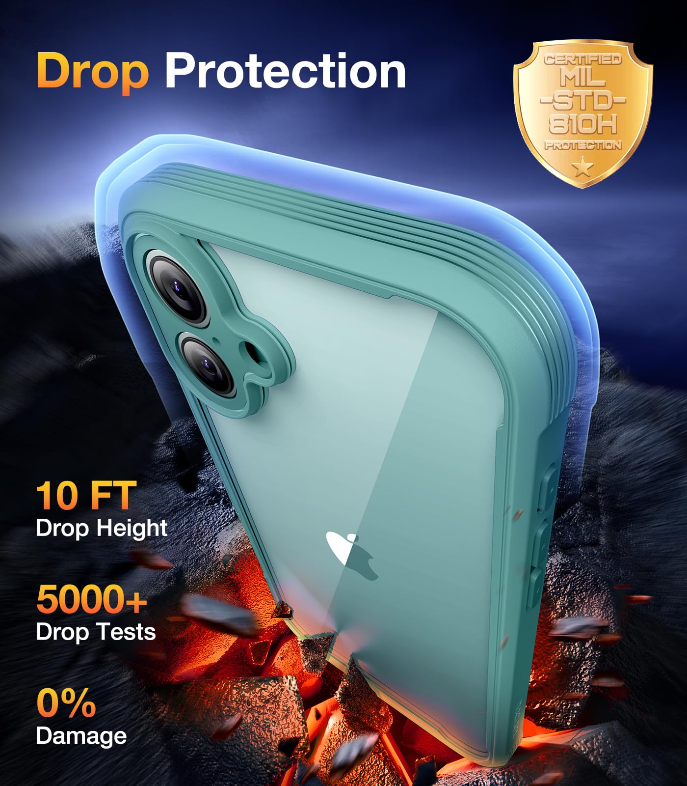 【360 Degree Full Body Rugged Protection】 Dual layer provides 360°full body rugged protection. Soft TPU shock absorption and raised 4 corners surround your phone and protect it from accidental drops and falls. With full coverage camera lens protector designed for iPhone to protect your camera and brings you the original of beauty to every photo and video.