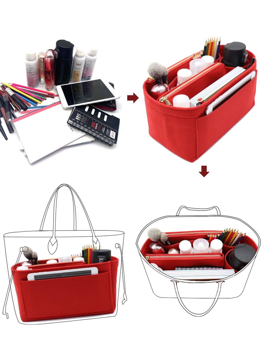 BETTER PROTECT:Felt Purse Organizer with High quality and New Materials are made of Sturdy ,Soft and pliable, Lightweight Felt fabric makes your purse a better protect.The Zipper of the organizer are made of Metal, Durable, Fashion and smoother sturdy and keeps your bag shape and shipshape.