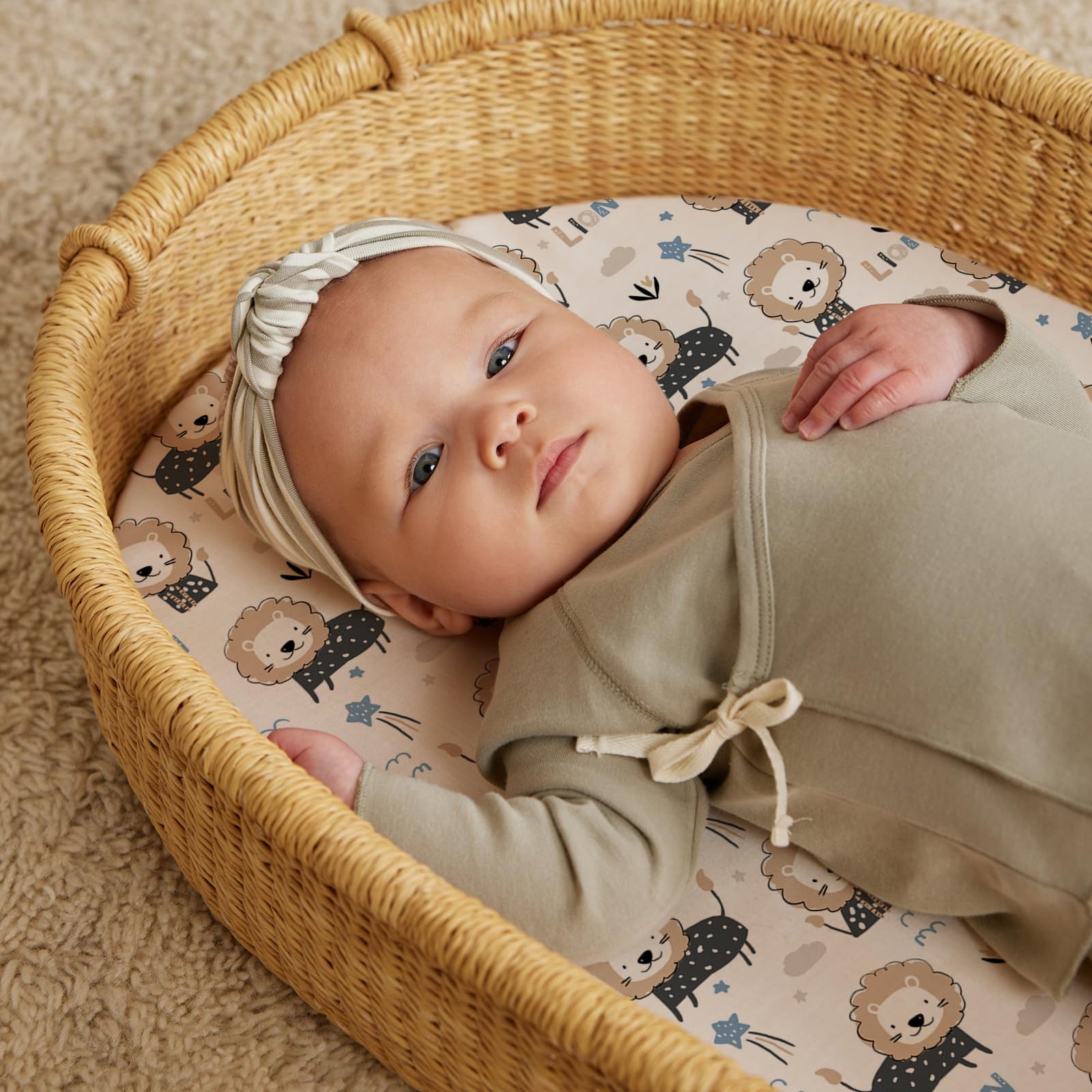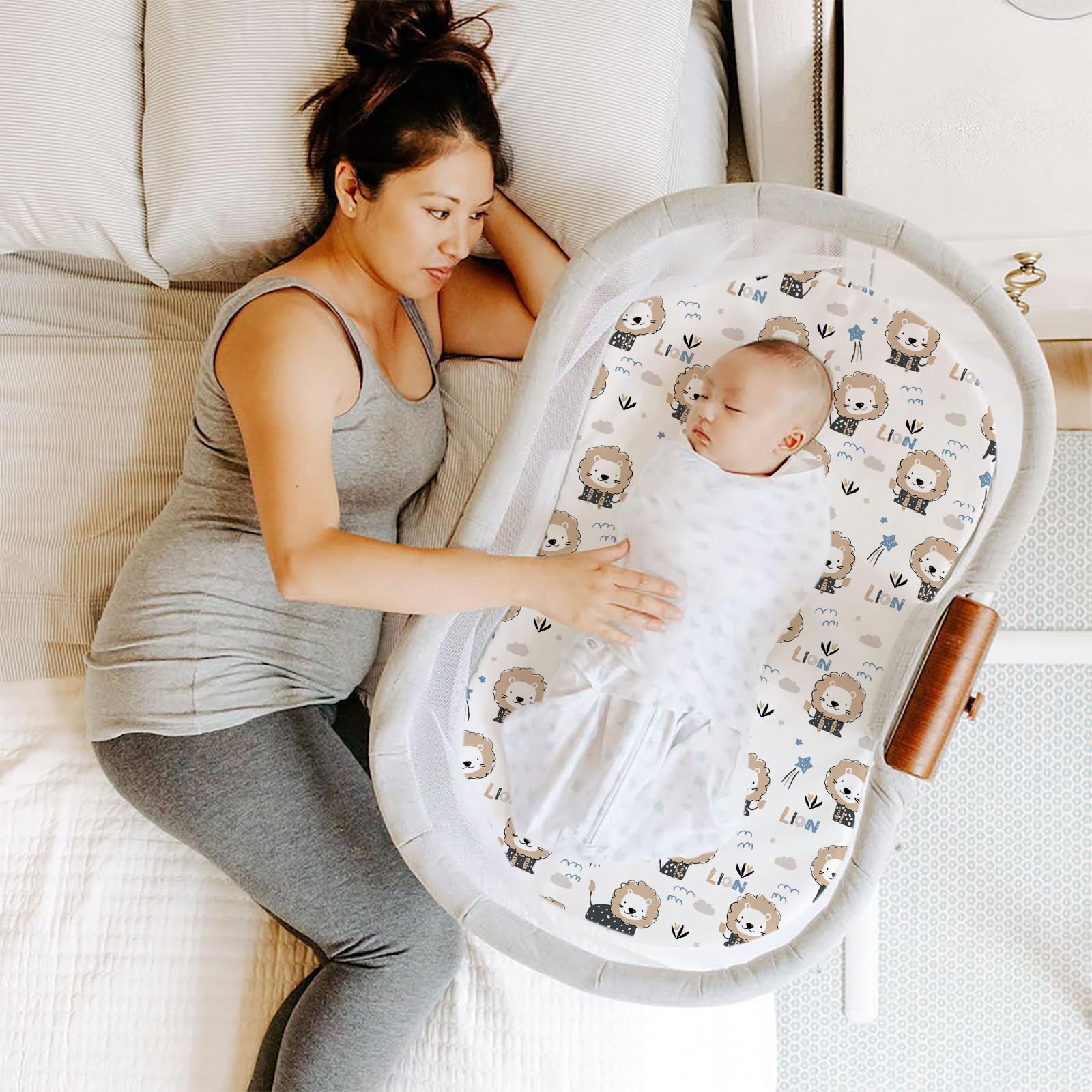 UNIVERSAL FIT BASSINET SHEETS FOR ALL CRADLE MATTRESSES:Our bassinet sheets are designed to fit all bassinet mattress pads, including oval, round, rectangle, and hourglass shapes. Whether you’re using a bedside sleeper, Moses basket, or standard bassinet, these bassinet sheets feature stretchy elastic edges for a snug, secure fit that won’t slip or bunch.