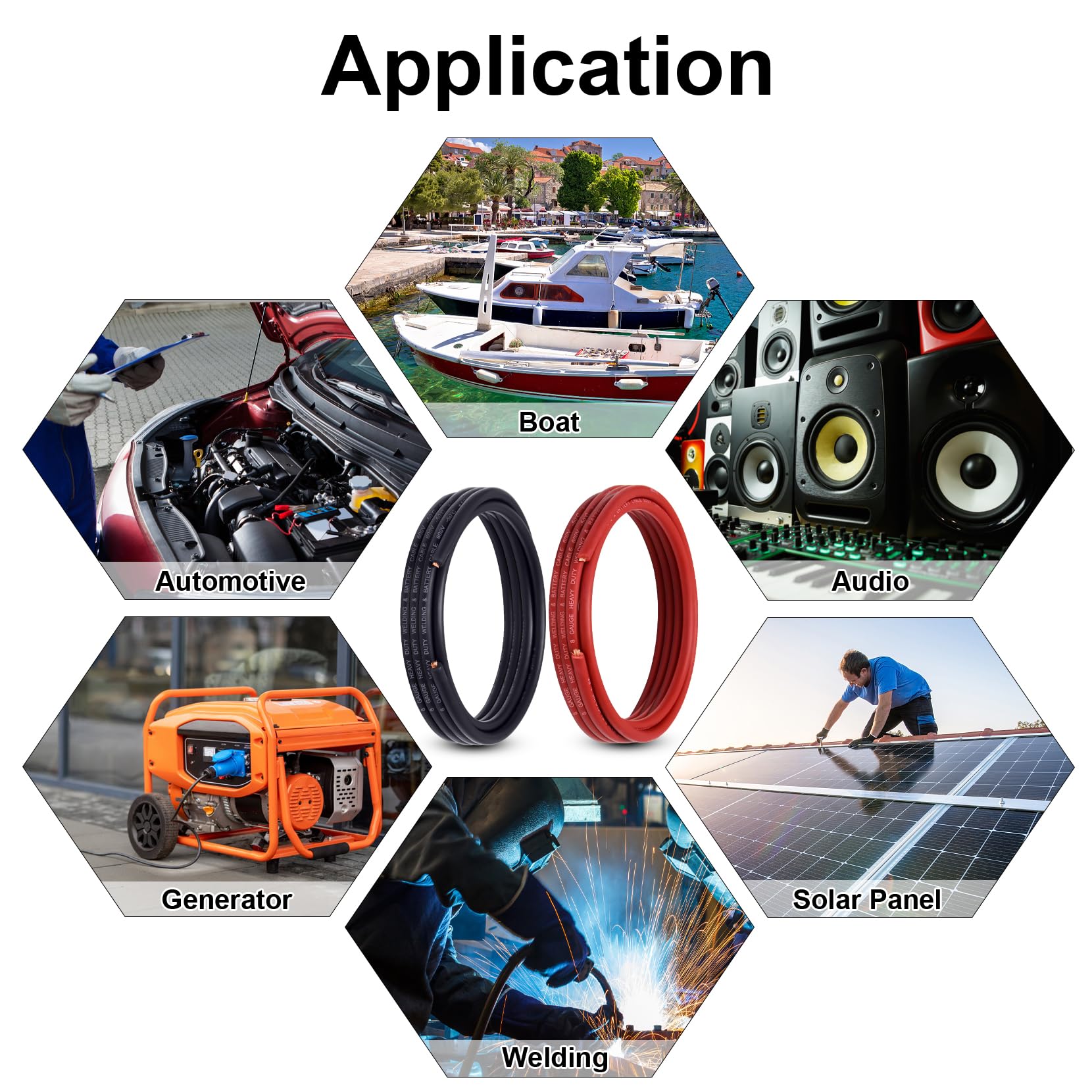 Premium Fully Annealed Oxygen-Free Copper: Geosiry 8 gauge battery cable is made of 100% fully annealed oxygen-free copper wire (OFC) and solvent-resistant EPDM insulating jacket for excellent conductivity and flexibility.