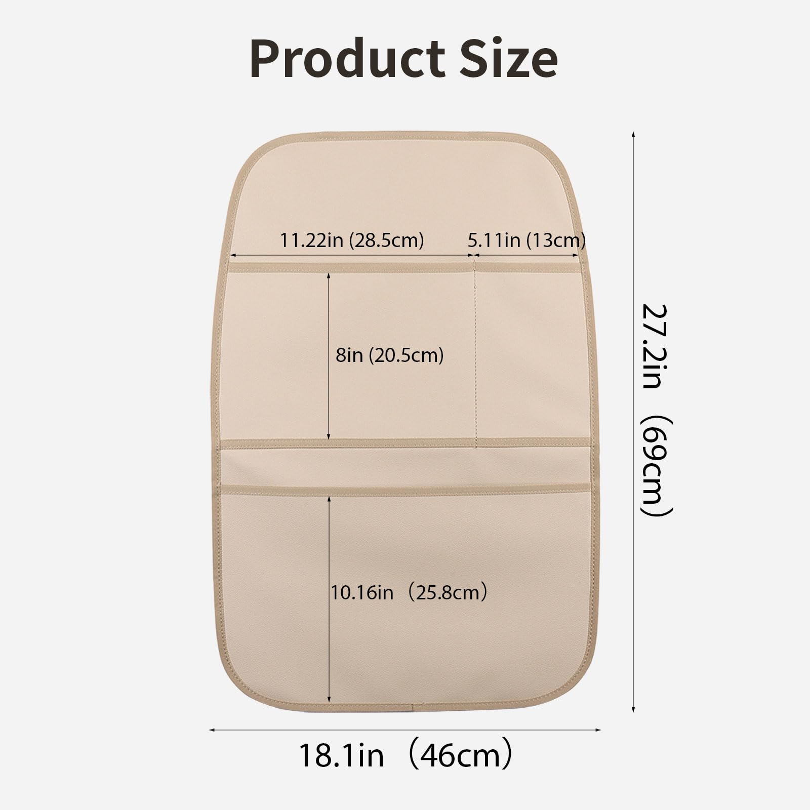 HIGH QUALITY AND DURABLE - The front of the car seat back organizers is made of high-quality upholstery leather, which is elegant and high-grade, and the soft felt on back protects seatback, the rounded corners are not easy to collapse or curl, and the thickened and enlarged kick mates last longer