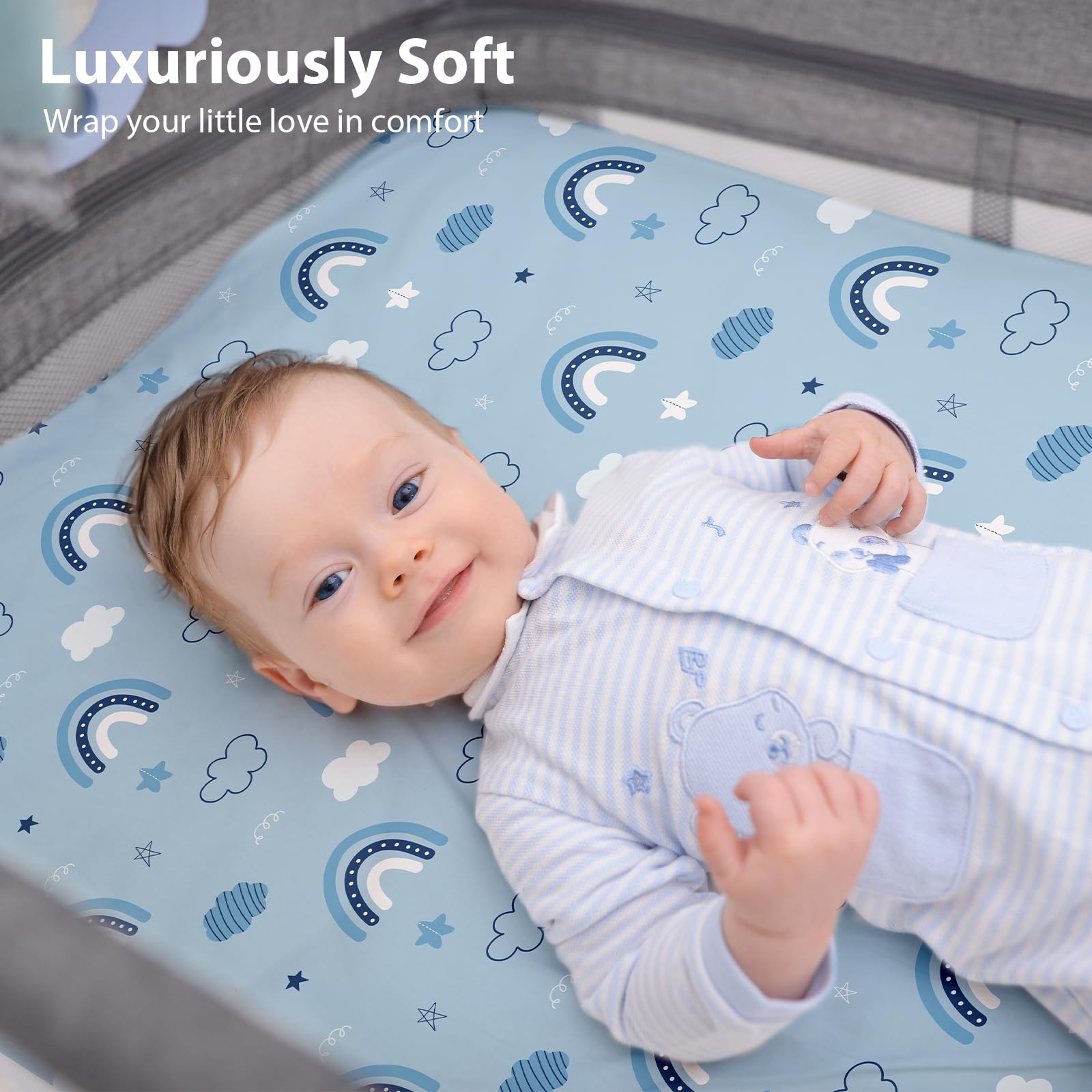 Ideal Choice: With a 360° elastic-edged design for a snug fit and easy changes, our baby bassinet sheets are an ideal choice for energetic playtime and sound sleep. As an essential for baby registry, they’re a thoughtful and practical choice for baby showers, holidays, and birthday preparations.