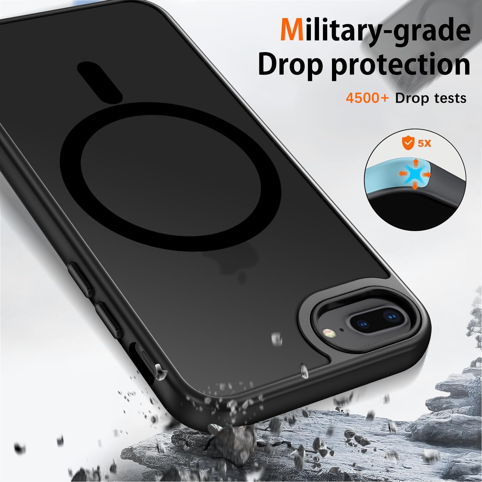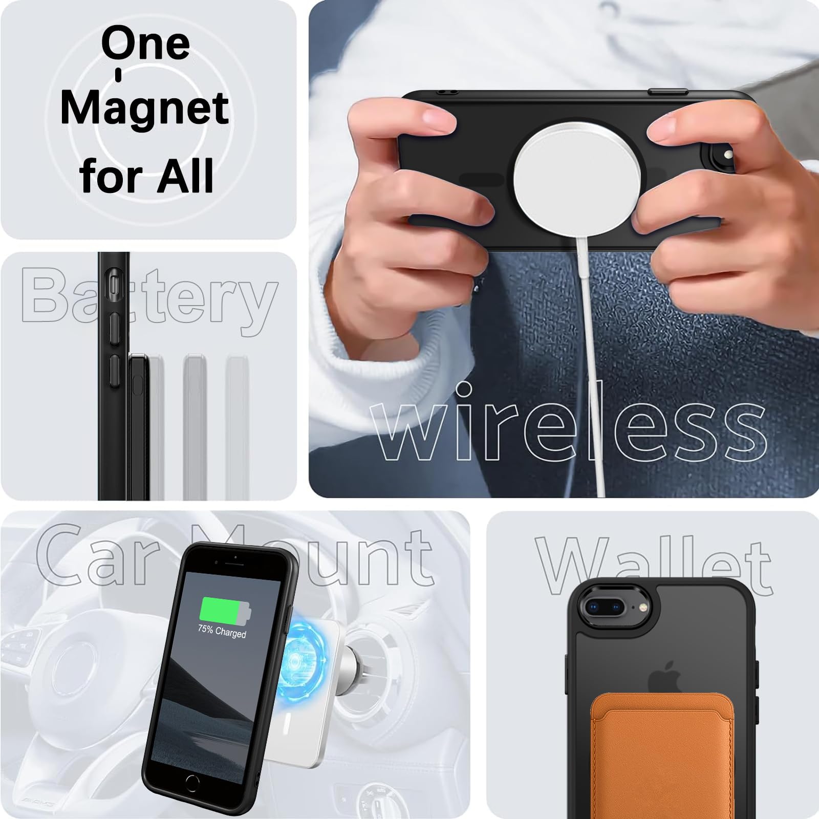 Compatible with Magsafe: Particularly designed for iPhone 7 plus/iPhone 8 plus, the phone case is compatible with Magsafe chargers and other Qi Wireless chargers without signal influence. Built-in strong magnet, the iPhone 7 Plus/8 Plus phone case will not fall off no matter how it rotates with super adsorption capacity. The perfectly aligned magnetic attraction makes wireless charging faster and more stable