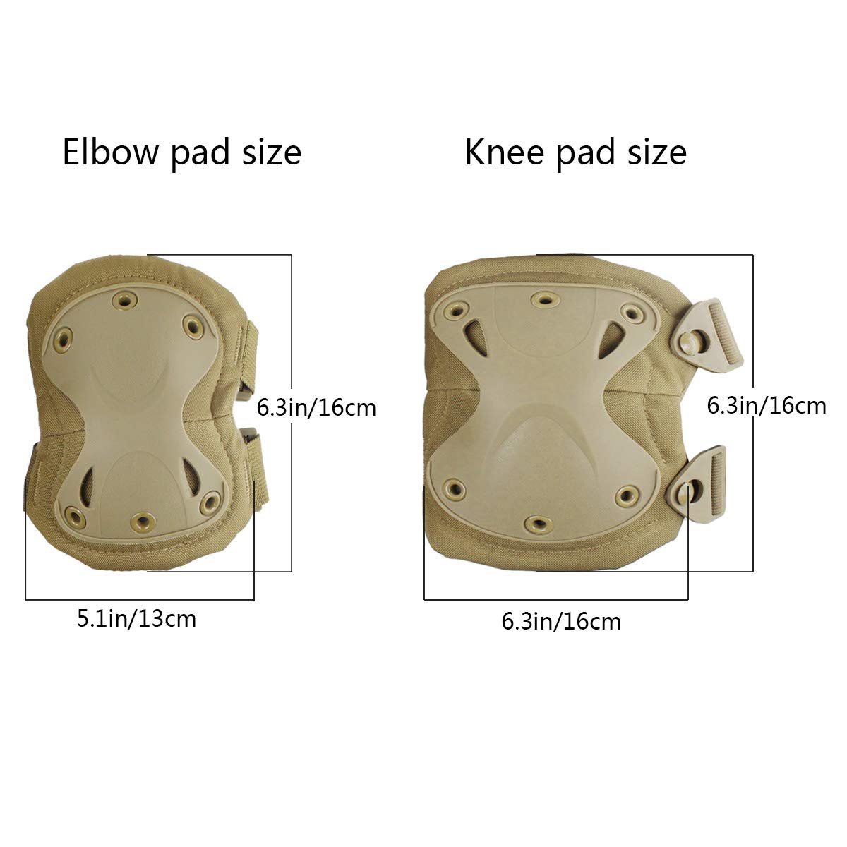 🏂Size:Elbow Pad Size: 5.1"*6.3" / 13cm*16cm; Knee Pad Size:6.3in*6.3in/16*16cm; Weight:390g.