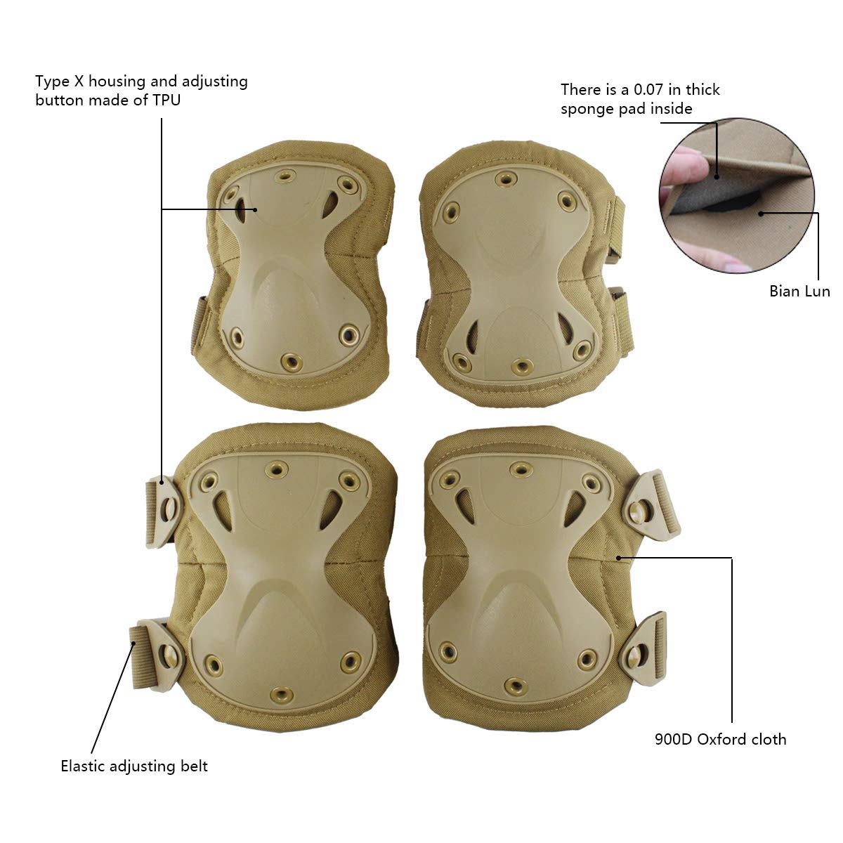 🏂Materials : Cushion is made of EVA high-density foam for superior shock absorption, outer lining is made of waterproof 900D oxford cloth, shell is made of a unique X-shaped thermoplastic polyurethane (TPU).