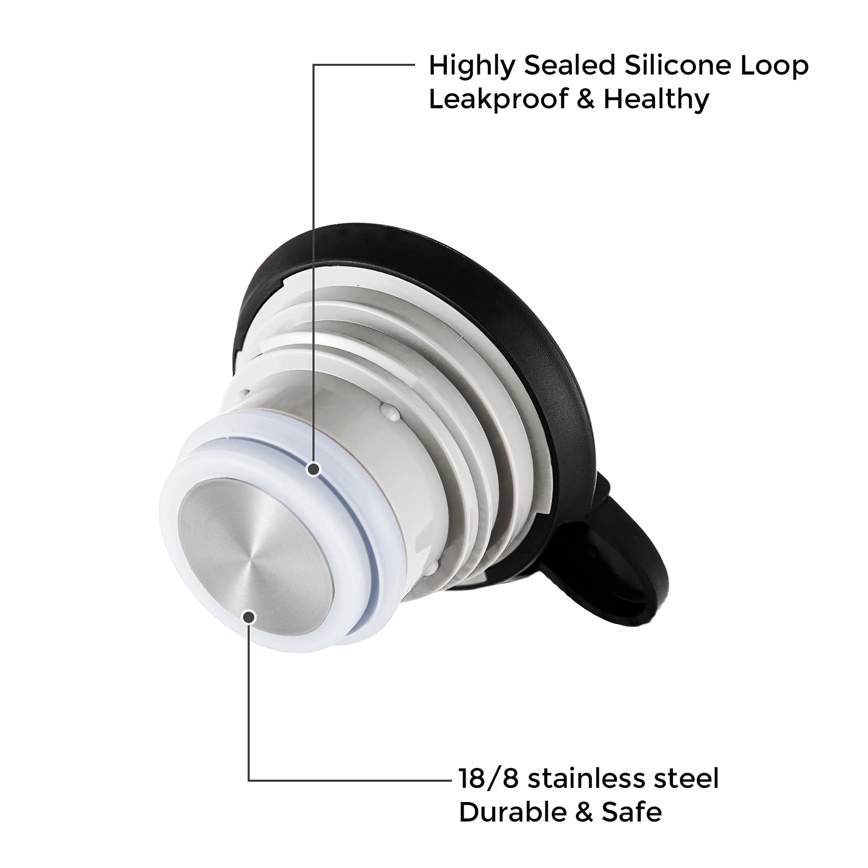 Groove spout and inner dual silicon rings are available, which avoid leaking when pouring water. Our leak-proof lid is designed with a new insulated and air-tight construction, always locks in the correct place when closing. Even with a slight tilt, the thermal carafe pitcher will not leak one single drip.
