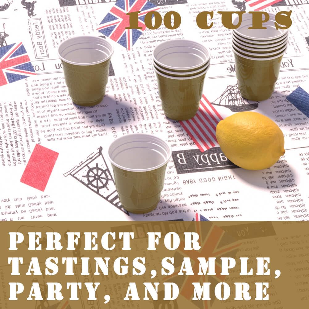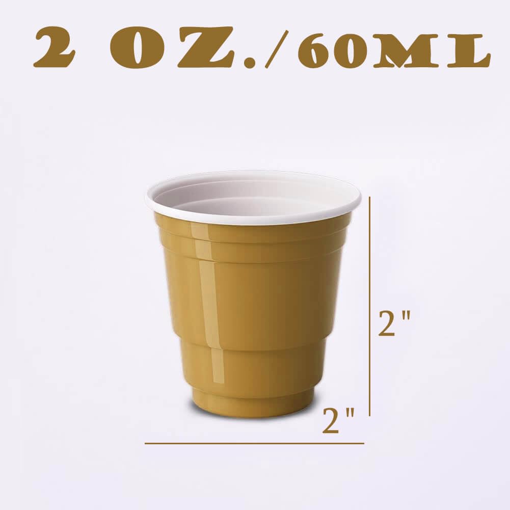 Includes 100 cups in bright gold, each with a capacity of 2 ounces
