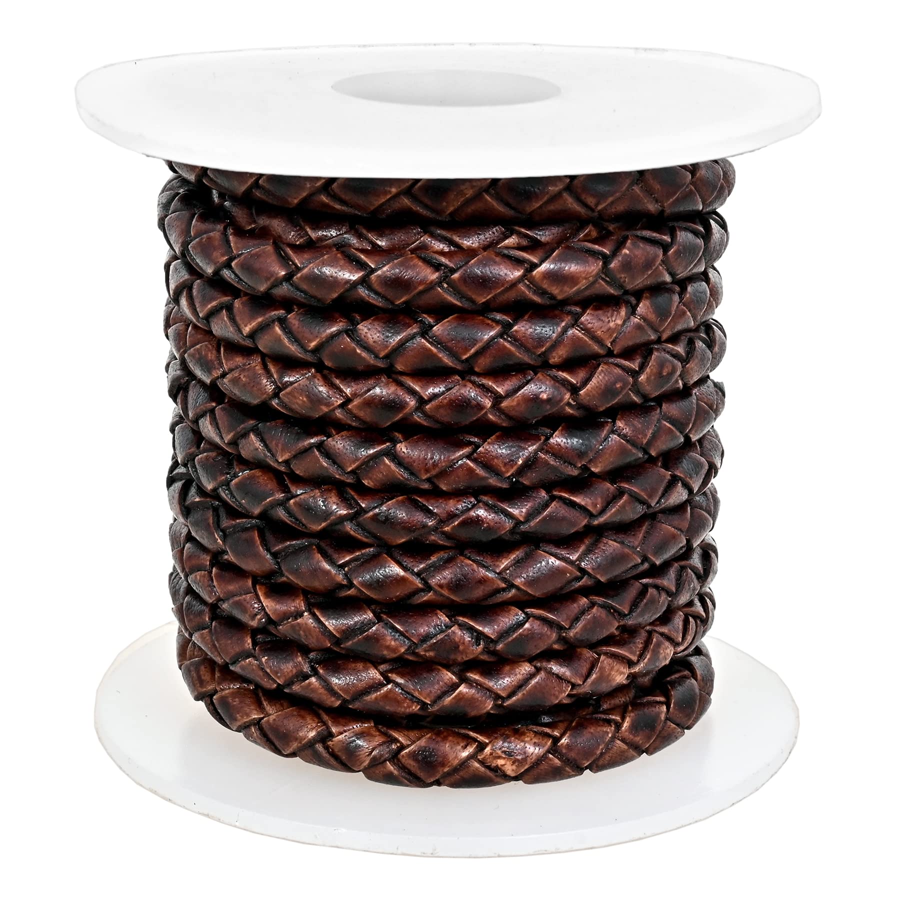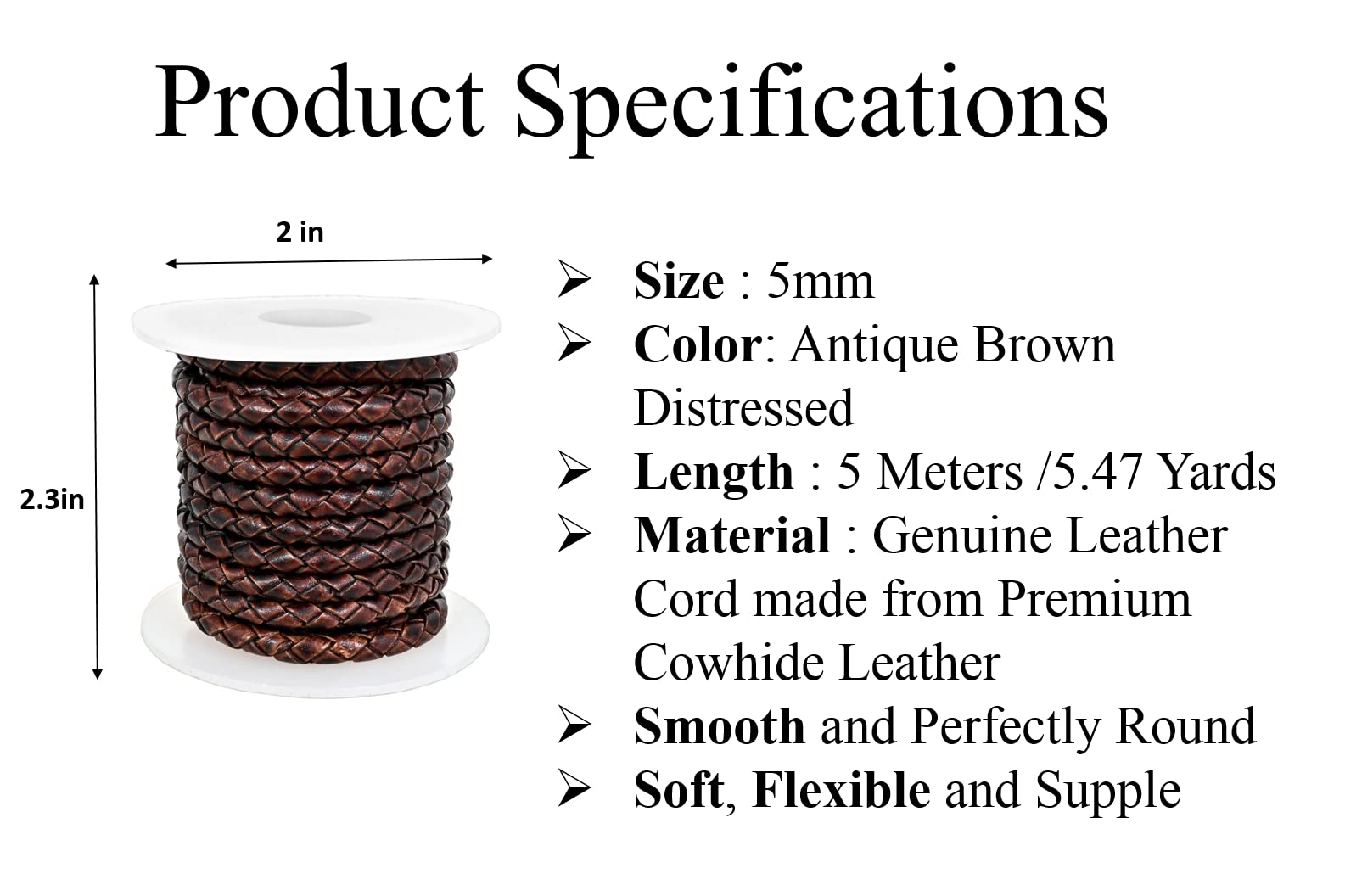 5mm braided leather cord - 5mm size, 5 metre length (5.47 yards). Premium quality for bolo tie supplies.