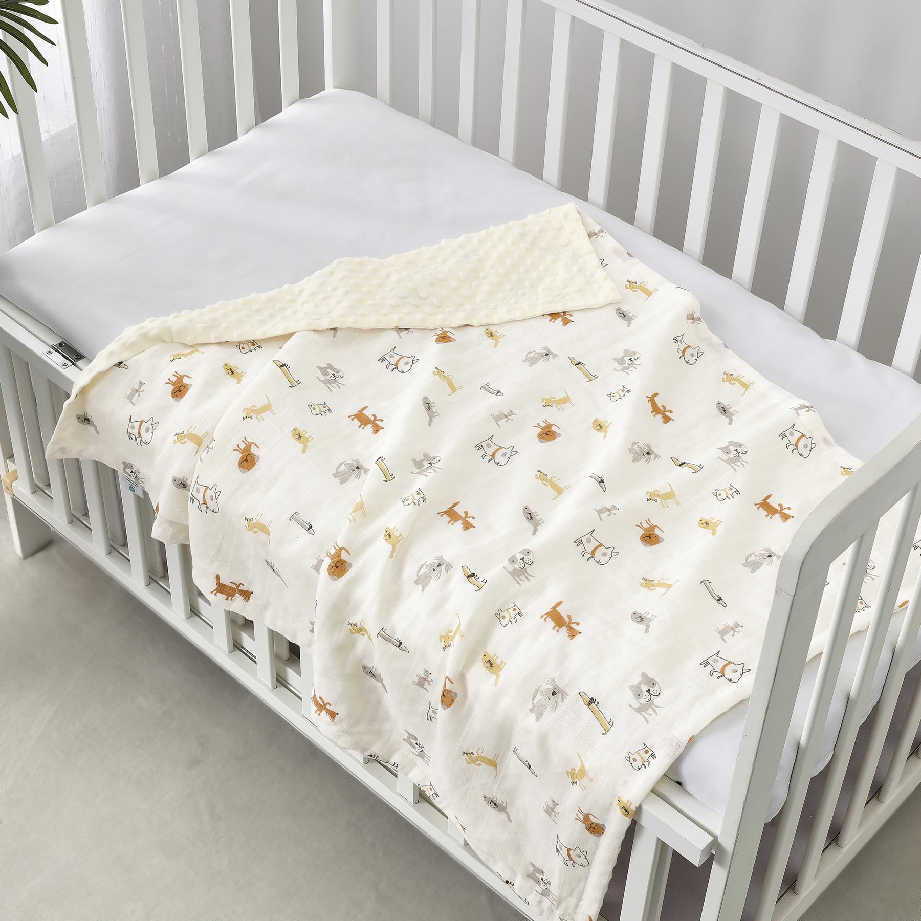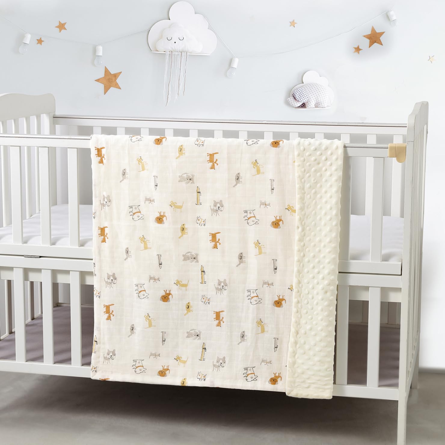 Material: Made with organic muslin cotton, which is soft, breathable, and gentle on a baby’s delicate skin.The mink (fleece) backing adds extra warmth and plush comfort, making it great for cooler weather.