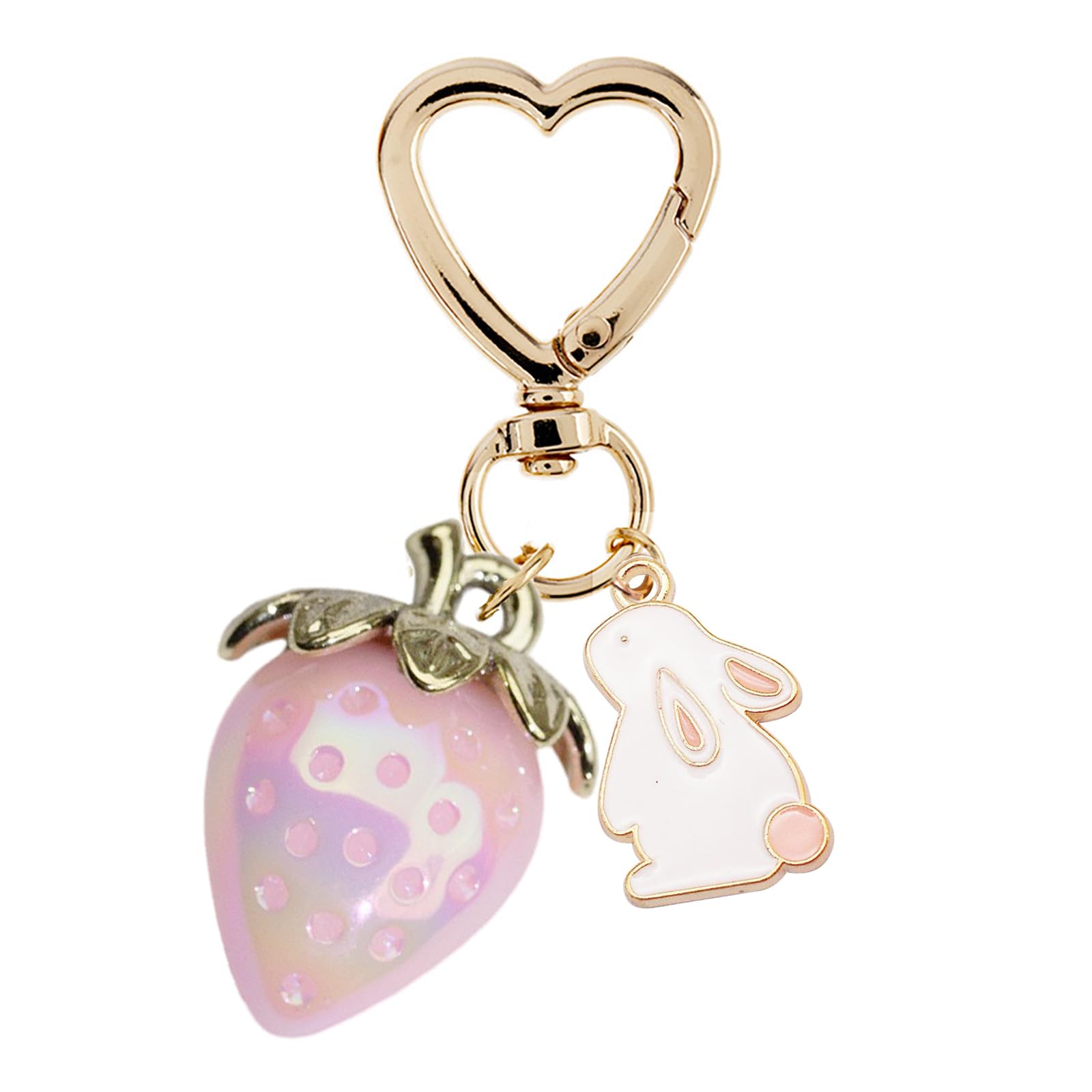 Iridescent strawberry charm, flower charm with heart clasp.