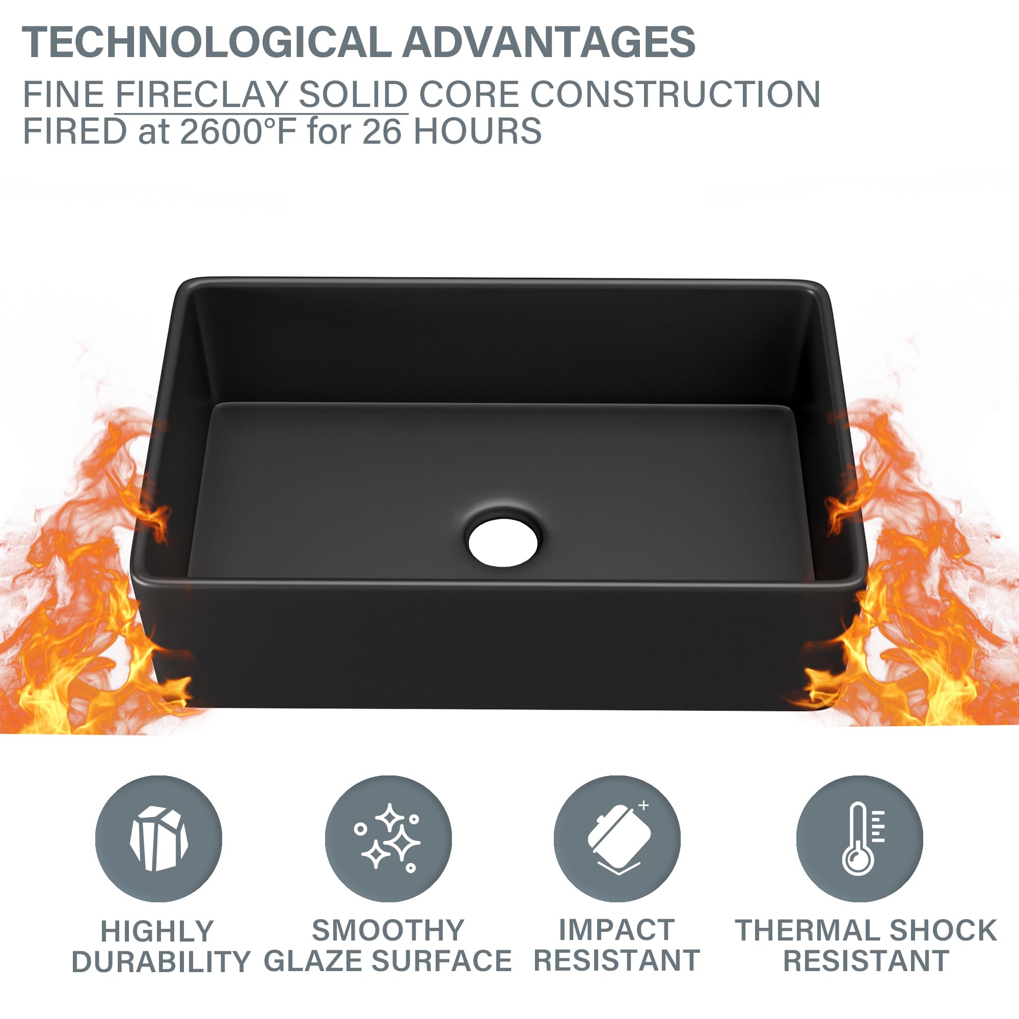 【Sturdy and Scratch Resistant】This farmhosue sink is made of good fireclay fired at a temperature of 2300°~2600° and has high durability.At the same time, the black farm sink is very sturdy, scratch resistant and Heat-resistant,To prevent your glass and porcelain tableware from breaking, please do not let them collide or fall onto the apron sink.