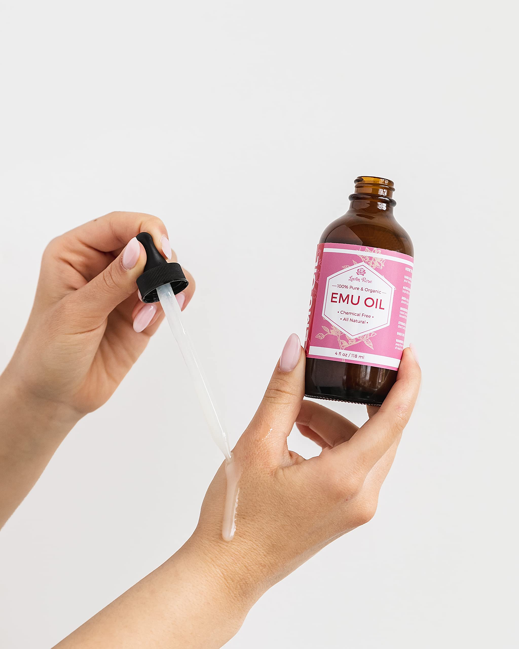 Our 4 oz Emu Oil is a versatile skincare and haircare product. It comes with a convenient pipette for precise application and has no scent. This oil offers numerous benefits for your skin and hair. It gently nourishes the skin's surface, keeping pores clear, hydrates dry lips, moisturizes hair, and improves overall facial and body skin quality. Its multipurpose nature makes it perfect for daily use. Designed exclusively for external use, its gentle texture ensures a pleasant experience. The included pipette makes application easy, allowing you to dispense a few drops precisely where needed. Make Emu Oil a crucial part of your daily skincare and haircare routine for effective hydration and maintaining an attractive appearance.