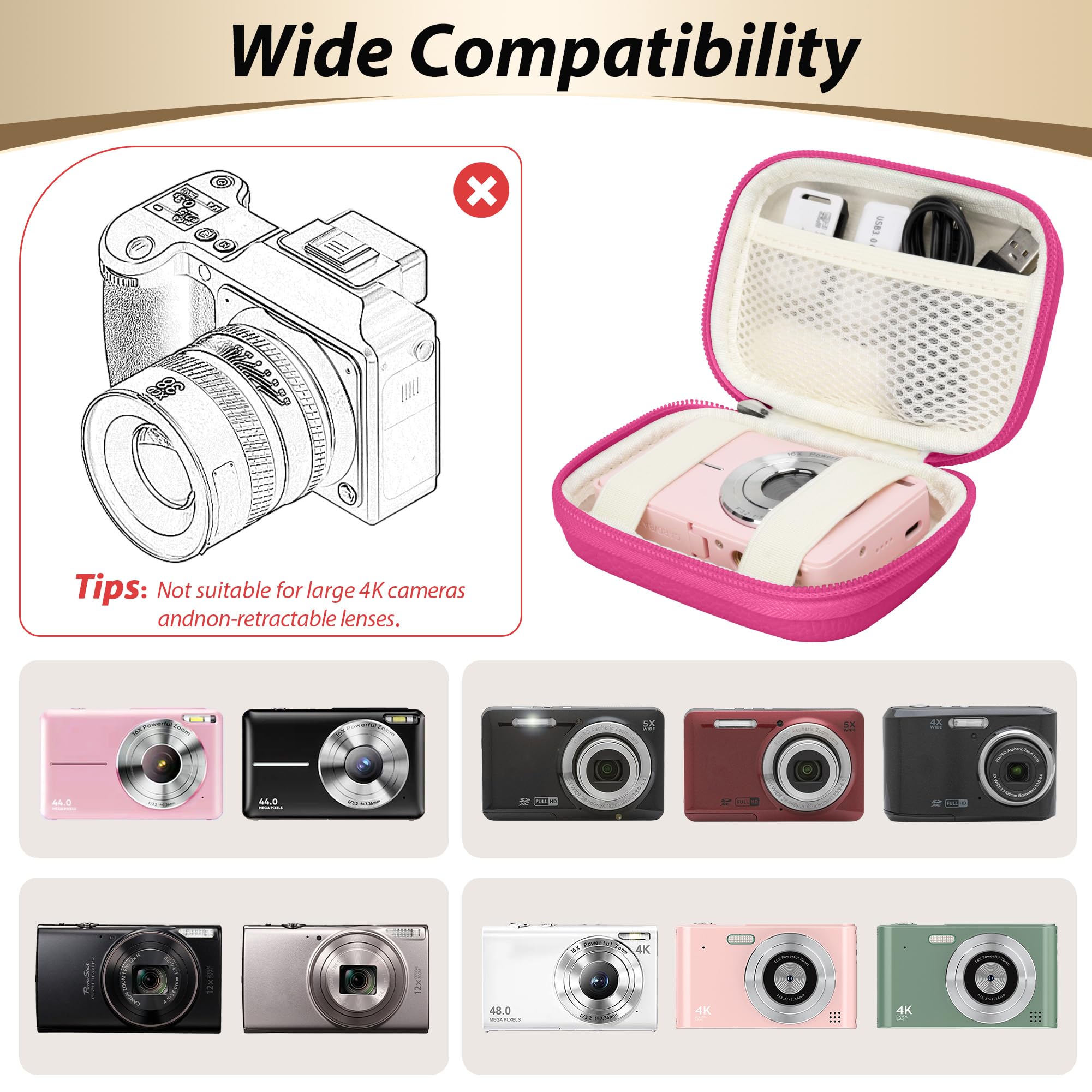 Excellent Protection: The digital camera case features a rugged EVA shell for waterproof, shockproof, and pressure-resistant protection. Its velvet-lined interior prevents scratches, keeping your kodak pixpro fz45 or other compact cameras safe alongside digital camera accessories