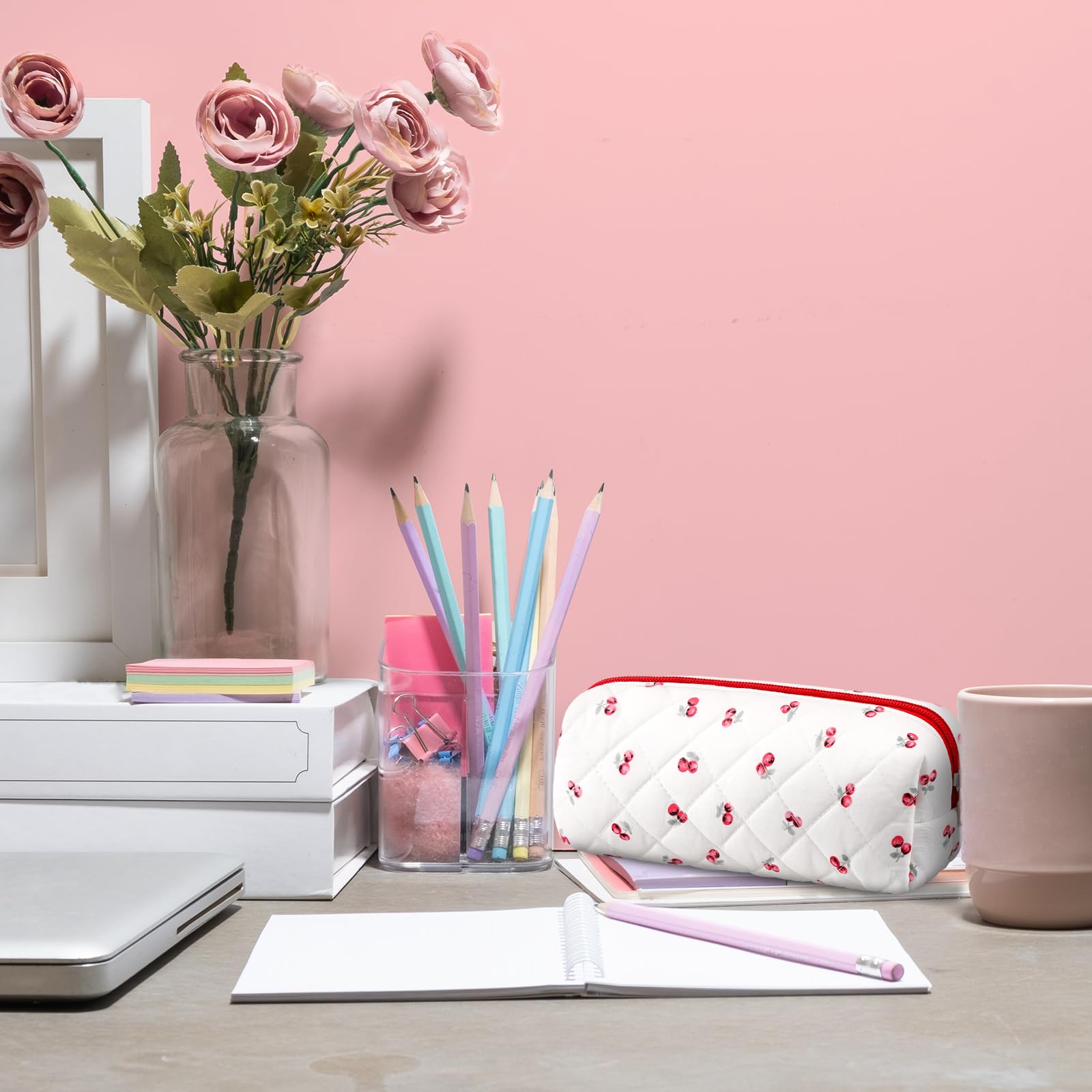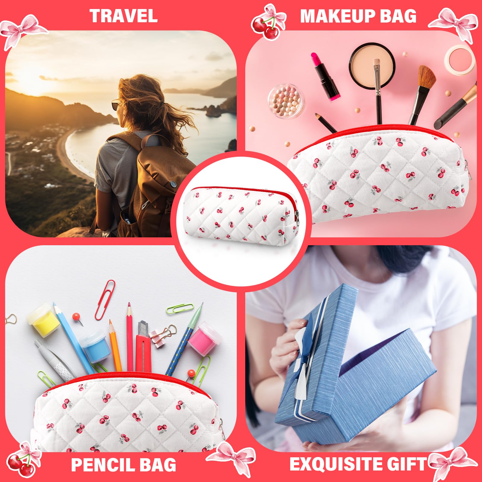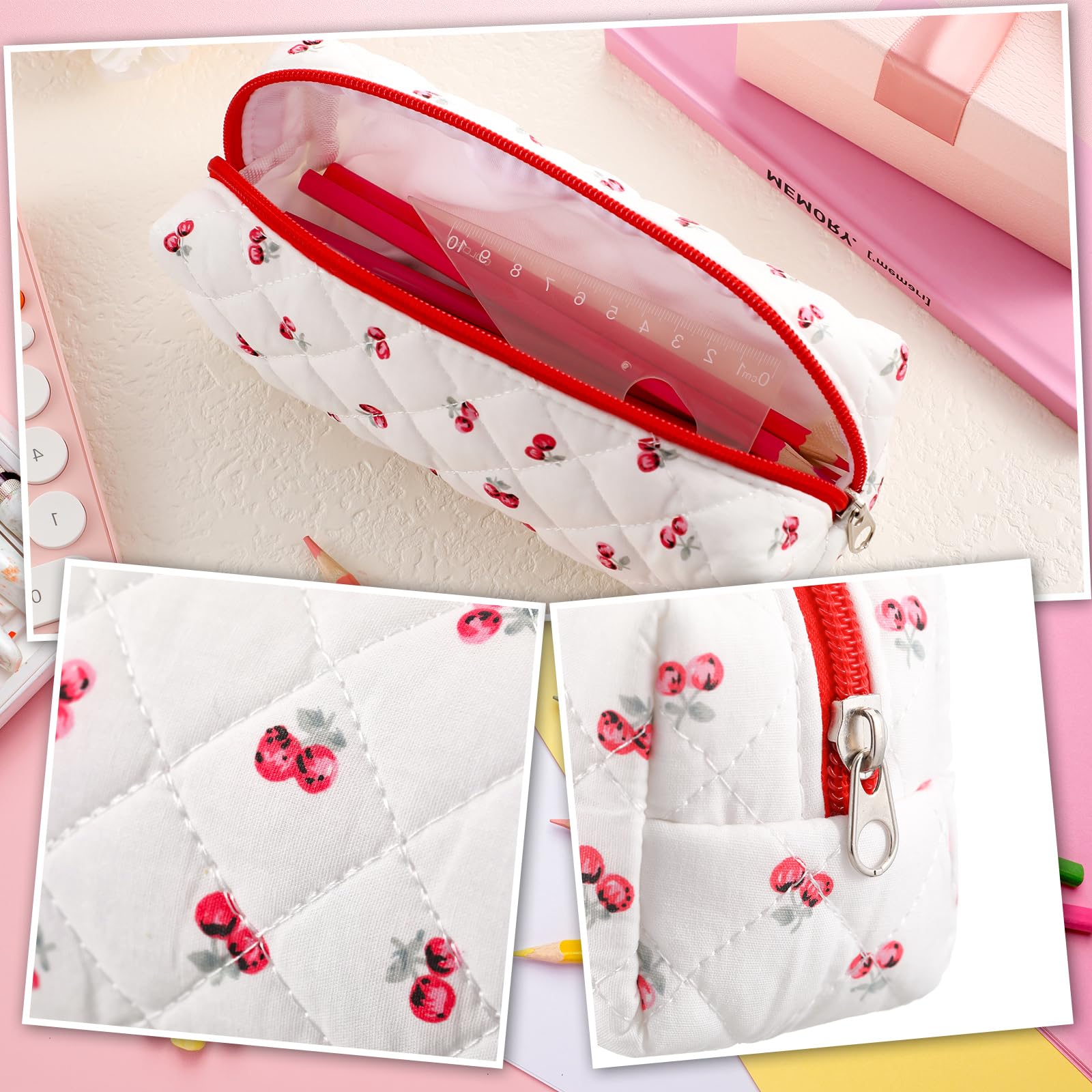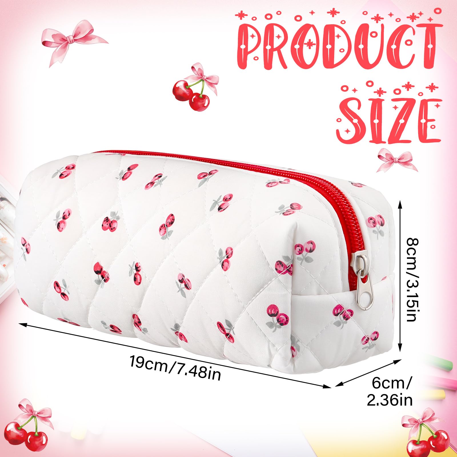 Beautiful Pattern: adorned with stylish flirty cherry prints, this cherry pencil case is the ideal accessory for cherry enthusiasts; Its charming white background is dotted with red cherries enhance its elegant and chic appearance, ensuring you make a statement wherever you go