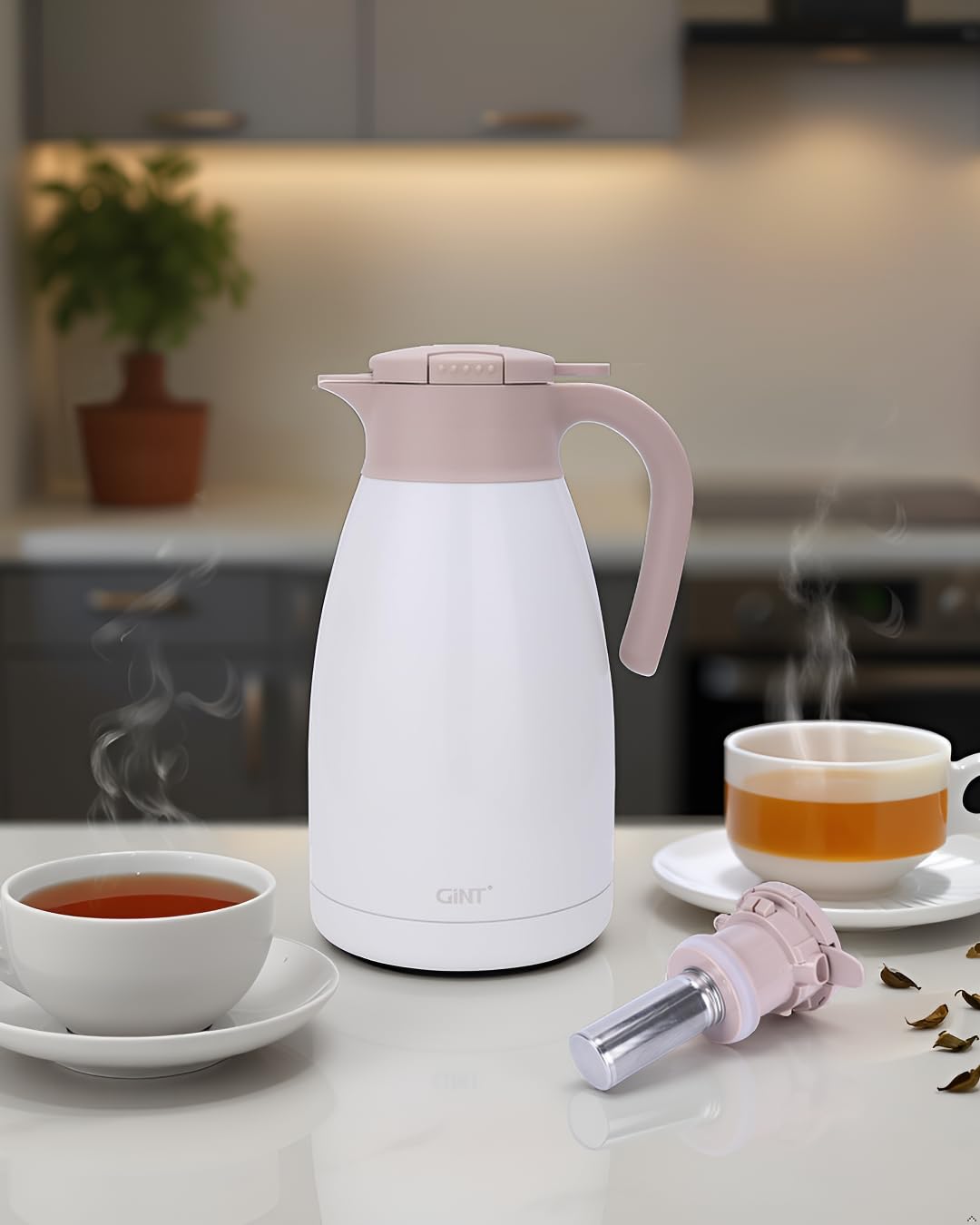 VERSATILE & DETACHABLE DESIGN: This stainless steel tea infuser lid features a built-in loose leaf tea steeper for stress-free disassembly, making it ideal for coffee carafes, mugs, or travel bottles. Brew loose-leaf teas, herbs, or coffee grounds with zero mess! Perfectly fits GiNT 51oz, 64oz, and 74oz coffee carafes.