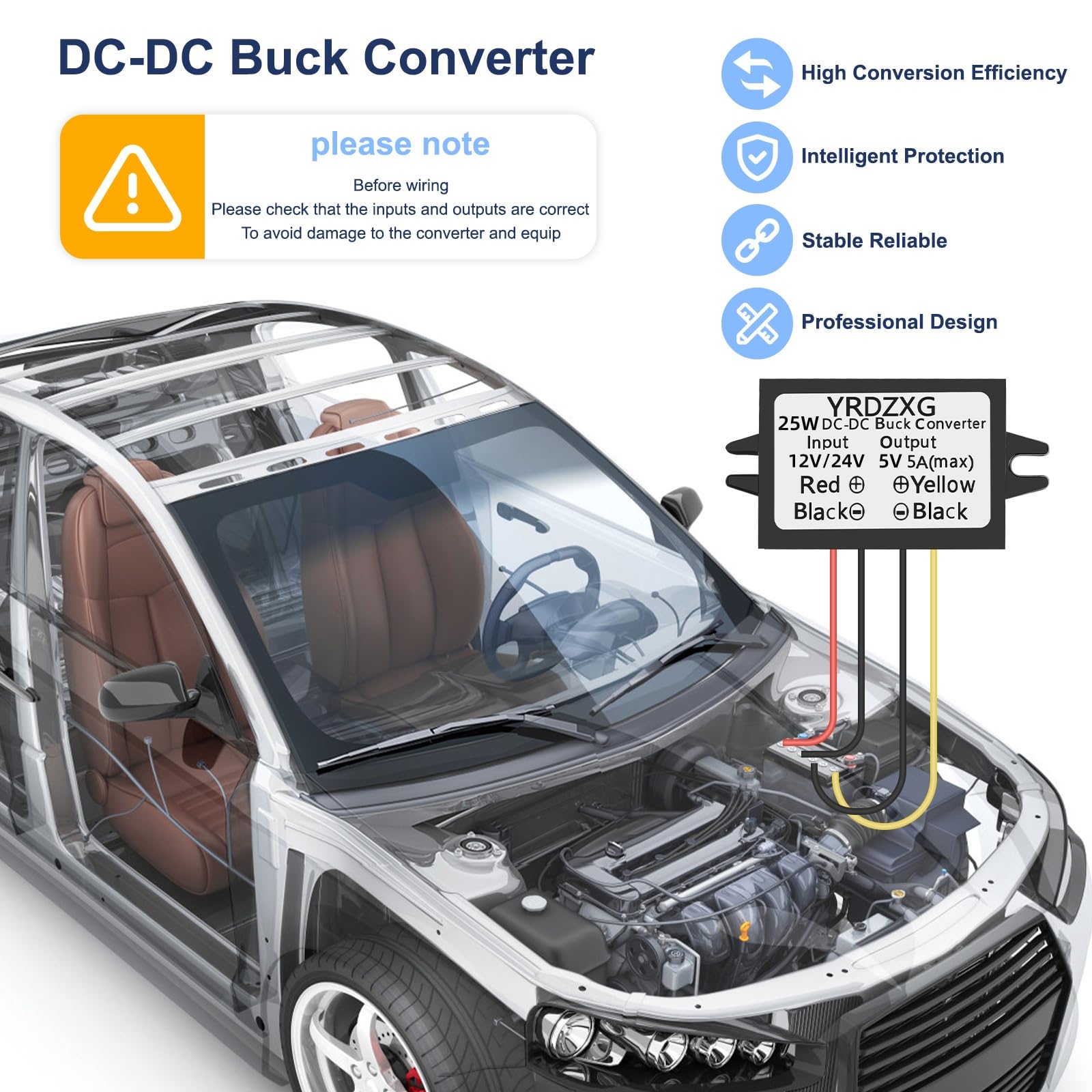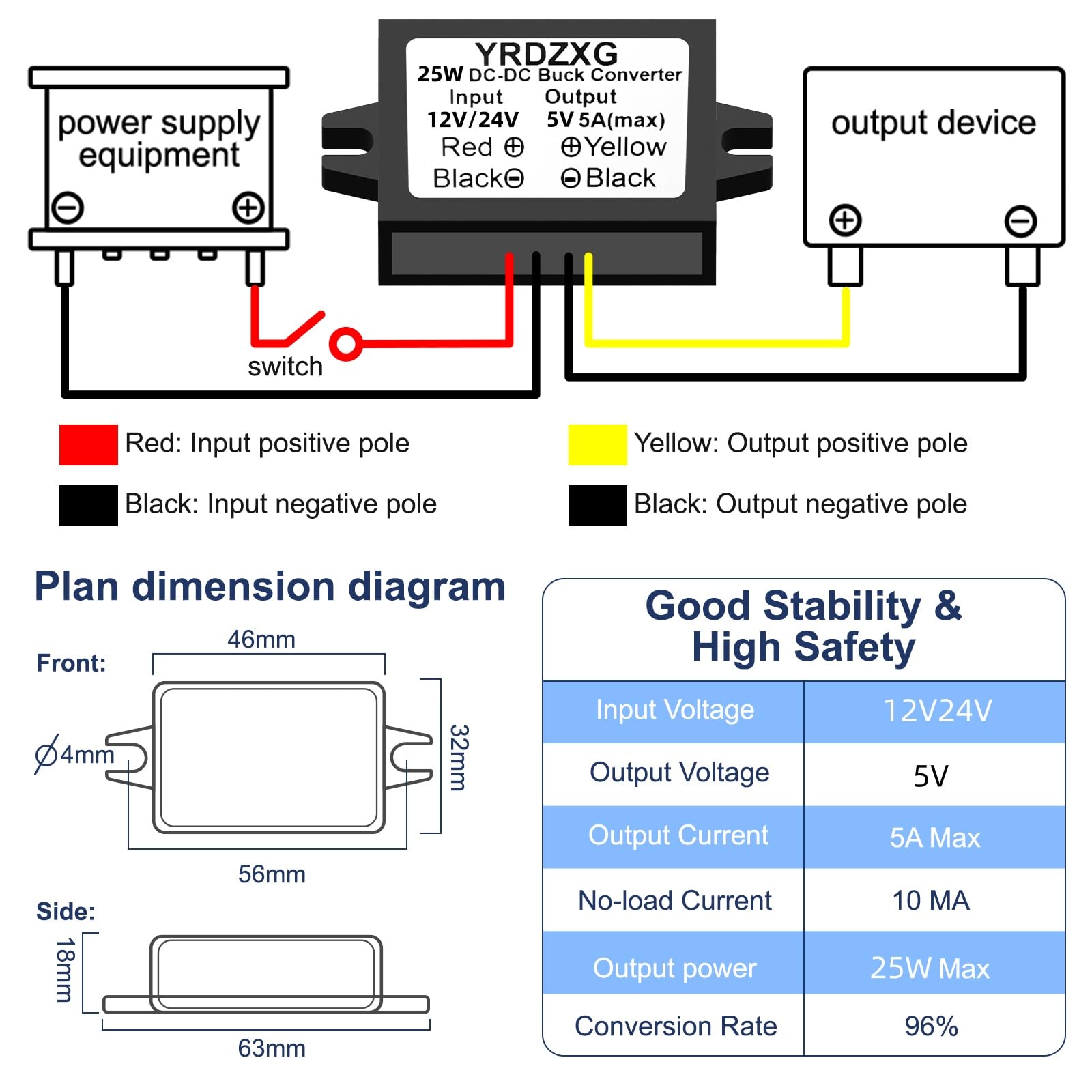 Input Voltage:DC 12V 24V Input Voltage Range:(12V-32V), Fixed Output Voltage: DC 5V, Output Current: 5A 25W(Max)